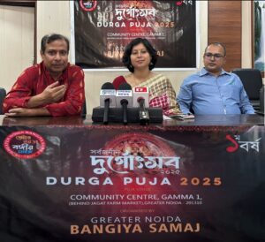 ग्रेटर नोएडा। (शफी मौहम्मद सैफी) ग्रेटर नोएडा बंगीय समाज ( GNBS), जो इस वर्ष मार्च में स्थापित एक पंजीकृत सामाजिकसांस्कृतिक संगठन है, गर्व के साथ घोषणा करता है कि वह ग्रेटर नोएडा के गामा-1 कम्युनिटी सेंटर में अपनी पहली दुर्गा पूजा का आयोजन करेगा।इसी सिलसिले में ग्रेटर नोएडा प्रेस क्लब में प्रेस कॉन्फ़्रेंस आयोजित की गई इस मौके पर मनोजित चक्रवर्ती ने कहा कि बंगाली संस्कृति को दिल्ली-एनसीआर में बढ़ावा देने और संरक्षित करने के उद्देश्य से, GNBS ग्रेटर नोएडा के हृदय में बंगाल के सबसे महत्वपूर्ण पर्व की भव्यता लेकर आ रहा है। इसमें आध्यात्मिक अनुष्ठान, रंगारंग सांस्कृतिक प्रस्तुतियां और सामुदायिक सहभागिता का अद्भुत संगम होगा।पूजा का उद्घाटन अंतरराष्ट्रीय क्रिकेटर भुवनेश्वर कुमार करेंगे, जिससे इस ऐतिहासिक प्रथम आयोजन को गौरव और प्रेरणा मिलेगी।त्योहार की उमंग को और बढ़ाते हुए, GNBS को “बेस्ट थीम सॉन्ग अवार्ड 2025” से सम्मानित किया गया है, जो उन्हें नारायणी नमस्तुते ग्लोबल अवार्ड्स में दुर्गा पूजा 2025 के लिए मिला है। यह थीम सॉन्ग महालया के अवसर पर जारी किया जाएगा। पुरस्कार का औपचारिक वितरण हमारे ही मंच पर आगामी दुर्गा पूजा समारोह के दौरान किया जाएगा, जिससे यह प्रथम पूजा और भी यादगार बन जाएगी। इस बारे में हमें डॉ.बिपाशा सोम गुने ने कहा कि ये कार्यक्रम 27 सितंबर से 2 अक्टूबर 2025 तक आयोजित किया जाएगा जिसमें पवित्र कुमारी पूजा का ग्रेटर नोएडा में पहली बार आयोजन होगा, जो देवी शक्ति के प्रति श्रद्धा का प्रतीक है। इसमें भोग/भंडारा: सप्तमी, अष्टमी और नवमी को सामूहिक भोग का वितरण होगा, जिसमें श्रद्धालु और आगंतुक एक साथ उत्सव की भावना साझा करेंगे।