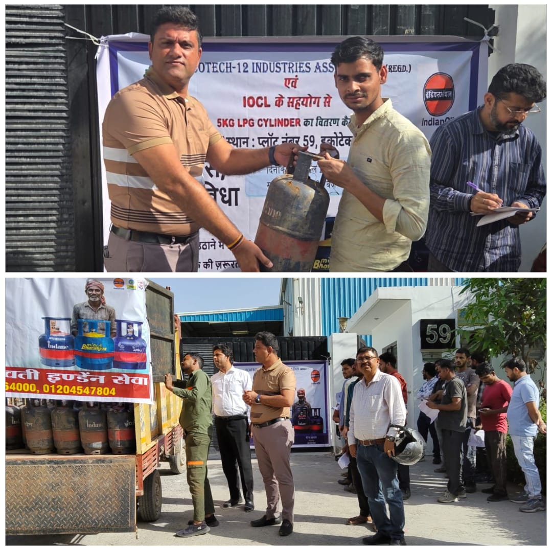 ग्रेटर नोएडा । शुक्रवार को प्लॉट संख्या 59, इकोटेक-12 इंडस्ट्रियल एरिया में 5kg LPG गैस सिलिंडर वितरण कैंप का आयोजन किया गया। इस कैंप का उद्देश्य क्षेत्र के श्रमिकों को सस्ती दरों पर एलपीजी गैस सिलिंडर प्रदान करना था, जो ईरान-इजराइल युद्ध के कारण प्रभावित हुई आपूर्ति के कारण उच्च कीमतों पर खरीदने को मजबूर थे।इकोटेक-12 इंडस्ट्रीज एसोशिएशन (रजि.) के अध्यक्ष साहिल कुमार ने बताया कि इस कैंप का आयोजन श्रमिकों के पलायन को रोकने और उद्योगों मे श्रमिकों की पर्याप्त संख्या बनाए रखने के उद्देश्य से किया गया था। उन्होंने कहा कि एसोशिएशन आगे भी इस प्रकार के कैंप आयोजित करने के लिए प्रतिबद्ध है।इस कैंप में IOCL की ओर से मैसर्स देवी सरस्वती इंडेन सेवा गैस एजेंसी के द्वारा गैस सिलिंडर की आपूर्ति की गई। साहिल कुमार ने सिलेंडर की पर्याप्त व्यवस्था सुनिश्चित करने के लिए गैस एजेंसी से आए भाटी का धन्यवाद किया। कैंप मे श्रमिकों की भारी भीड़ को संभालने और व्यवस्था बनाए रखने के लिए प्लॉट संख्या 59 मे कार्यरत रोहन , एसोशिएशन के कोर्डिनेटर राजेश पुंडीर का भी अध्यक्ष साहिल ने धन्यवाद किया