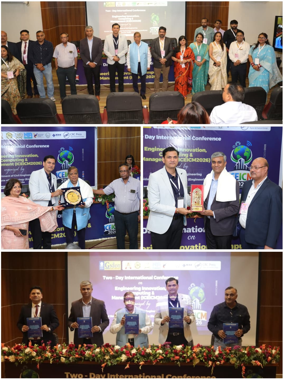 ग्रेटर नोएडा स्थित ग्रेटर नोएडा इंस्टीट्यूट ऑफ टेक्नोलॉजी (GNIOT) के सिविल इंजीनियरिंग विभाग द्वारा 24 एवं 25 अप्रैल 2026 को दो दिवसीय अंतरराष्ट्रीय सम्मेलन “इंटरनेशनल कॉन्फ्रेंस ऑन इंजीनियरिंग इनोवेशन, कंप्यूटिंग एंड मैनेजमेंट (ICEICM 2026)” का भव्य शुभारंभ किया गया। सम्मेलन का उद्घाटन प्रतिष्ठित अतिथियों की गरिमामयी उपस्थिति में हुआ, जिसमें मुख्य अतिथि प्रो. (डॉ.) रविंद्र कुमार सिन्हा, विशिष्ट अतिथि श्री प्रीत यादव तथा मुख्य वक्ता डॉ. अनुराग सिंह (एनआईटी दिल्ली) शामिल रहे। प्रोफेसर डॉ. धीरज गुप्ता, निदेशक (इंजीनियरिंग संस्थान) ने अपने स्वागत भाषण में कहा कि यह अंतर्राष्ट्रीय सम्मेलन *ICEICM 2026* इंजीनियरिंग, कंप्यूटिंग और मैनेजमेंट के क्षेत्र में नवीनतम शोध, नवाचार और विचारों के आदान-प्रदान का एक महत्वपूर्ण मंच है। उन्होंने बताया कि इस सम्मेलन में देश-विदेश से आए विद्वानों, शोधकर्ताओं और उद्योग विशेषज्ञों की भागीदारी इसे और अधिक समृद्ध बनाती है। उन्होंने आगे कहा कि इस सम्मेलन का उद्देश्य उभरती तकनीकों, जैसे आर्टिफिशियल इंटेलिजेंस, स्मार्ट इंजीनियरिंग और सतत विकास के क्षेत्र में नए दृष्टिकोण प्रस्तुत करना तथा अकादमिक और उद्योग के बीच मजबूत समन्वय स्थापित करना है। यह आयोजन शोध को प्रोत्साहित करने के साथ-साथ युवा शोधकर्ताओं को वैश्विक स्तर पर अपनी प्रतिभा प्रदर्शित करने का अवसर भी प्रदान करता है। इस कार्यक्रम का संचालन सिविल इंजीनियरिंग विभाग की सहायक प्राध्यापक डॉ. श्रीजा कक्कर द्वारा अत्यंत प्रभावशाली एवं सुसंगठित रूप से किया जा रहा है। सम्मेलन संयोजक डॉ. मोहित गुप्ता ने उद्घाटन संबोधन में बताया कि यह आयोजन वैश्विक स्तर पर शिक्षाविदों, शोधकर्ताओं एवं उद्योग विशेषज्ञों को एक साझा मंच प्रदान करने के उद्देश्य से आयोजित किया गया है। इस सम्मेलन में देश-विदेश से 830 से अधिक शोध पत्र प्राप्त हुए, जिनमें से कठोर समीक्षा प्रक्रिया के बाद 235 उच्च गुणवत्ता वाले शोध पत्र प्रस्तुति हेतु चयनित किए गए हैं। सम्मेलन में अमेरिका, रूस, उज़्बेकिस्तान सहित विभिन्न देशों से आए विशेषज्ञों ने अपने व्याख्यानों के माध्यम से नवीनतम तकनीकी शोध, नवाचार और उद्योग-शैक्षणिक सहयोग पर प्रकाश डाला। चयनित शोध पत्रों को टेलर एंड फ्रांसिस – CRC प्रेस, ESCI इंडेक्स्ड जर्नल एवं अन्य प्रतिष्ठित जर्नल्स में प्रकाशन का अवसर दिया जाएगा। साथ ही सभी स्वीकृत शोध पत्रों के सार (Abstracts) को ISBN सहित “बुक ऑफ एब्स्ट्रैक्ट्स” में प्रकाशित किया गया है। इस सम्मेलन की थीम “इंजीनियरिंग इनोवेशन, कंप्यूटिंग एवं मैनेजमेंट” वर्तमान तकनीकी परिवेश में अत्यंत प्रासंगिक है, जिसमें सिविल, मैकेनिकल, कंप्यूटर साइंस, आर्टिफिशियल इंटेलिजें