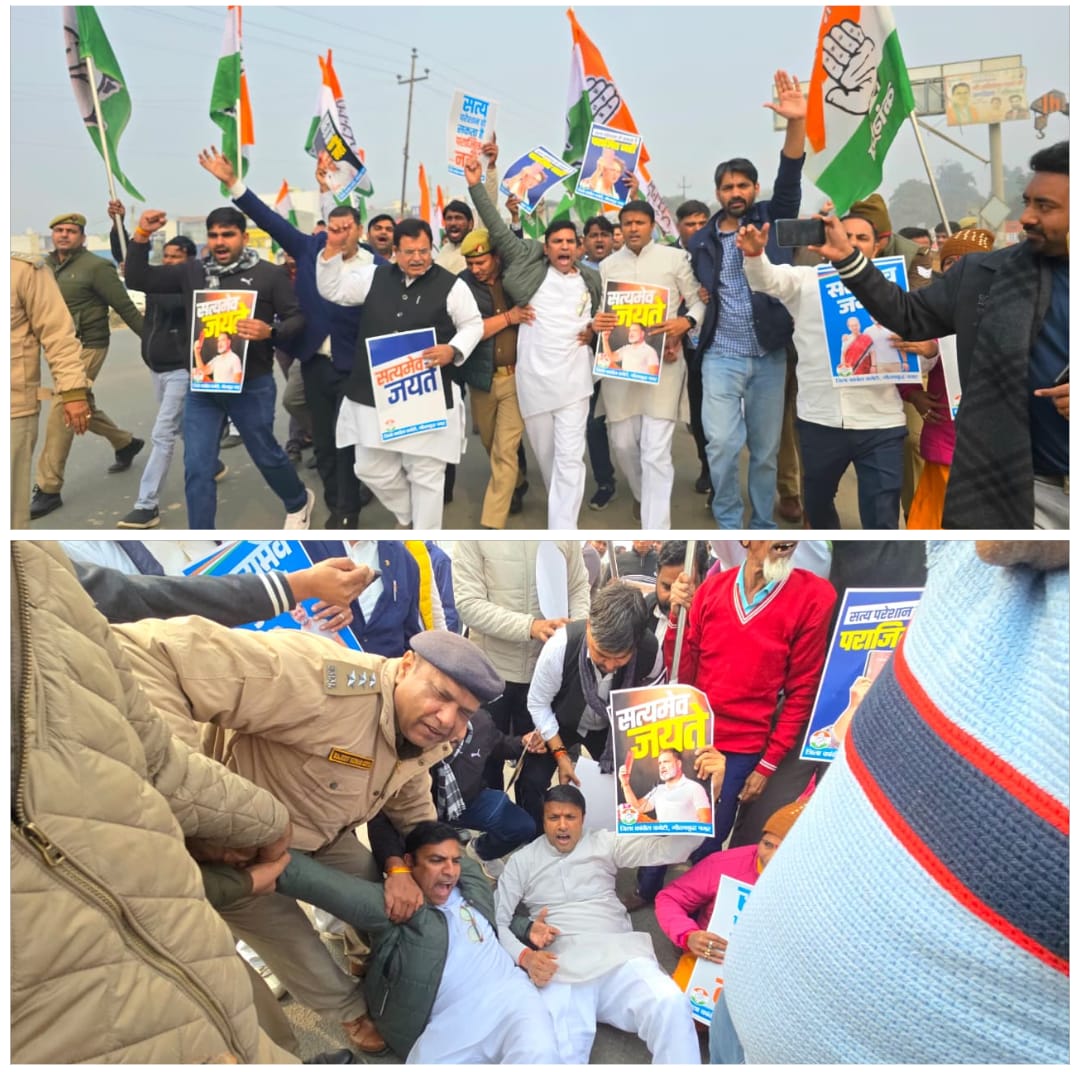 नेशनल हेराल्ड मामले में कांग्रेस का आक्रामक प्रदर्शन, भाजपा कार्यालय के बाहर लोकतंत्र बचाने की हुंकार