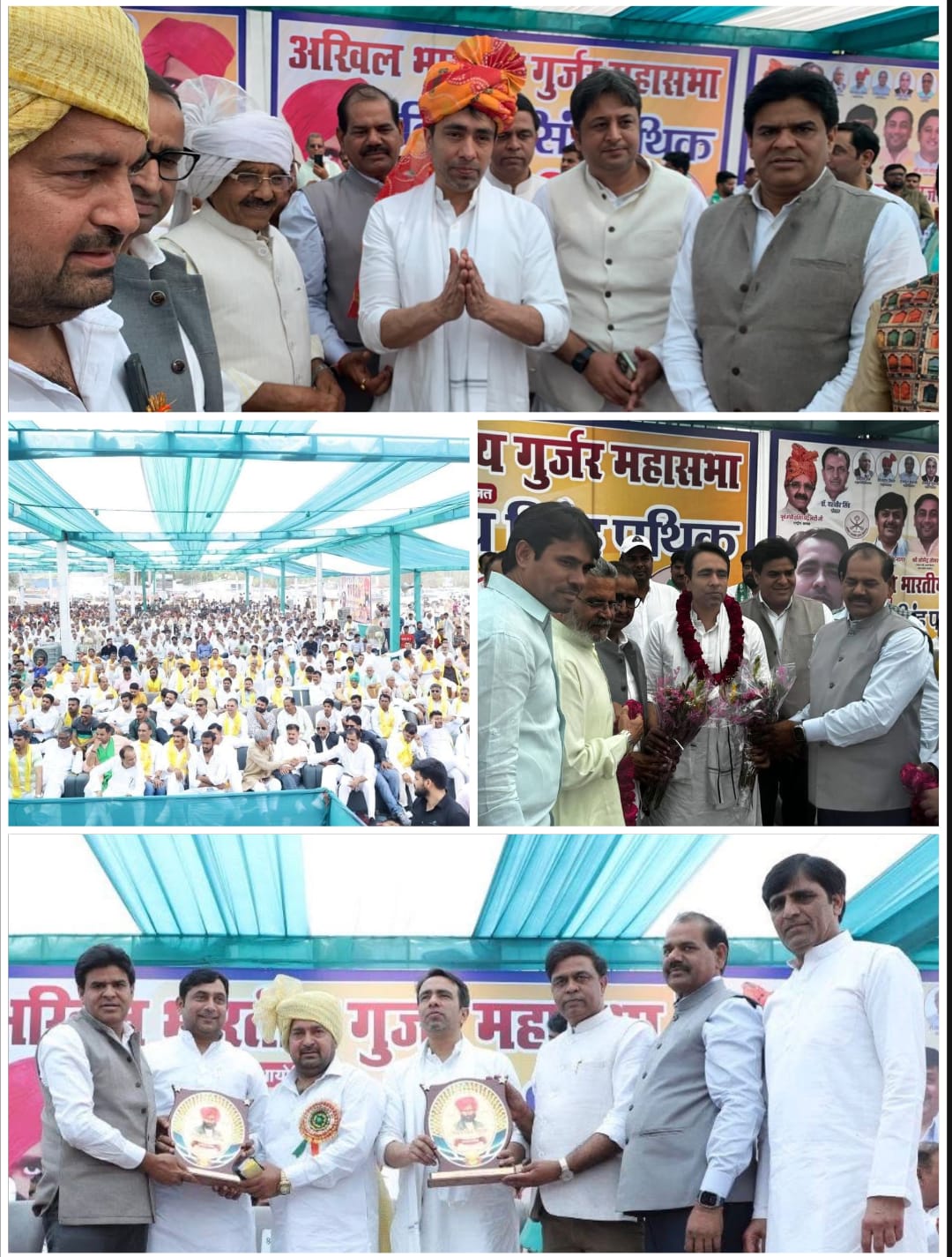 कार्यक्रम की अध्यक्षता अखिल भारतीय गुर्जर महासभा के राष्ट्रीय अध्यक्ष हरिश्चंद्र भाटी ने की तथा संरक्षक डॉ. यशवीर सिंह की विशेष उपस्थिति रही। इस अवसर पर मुख्य अतिथि का समाज की ओर से पगड़ी पहनाकर सम्मान किया गया।