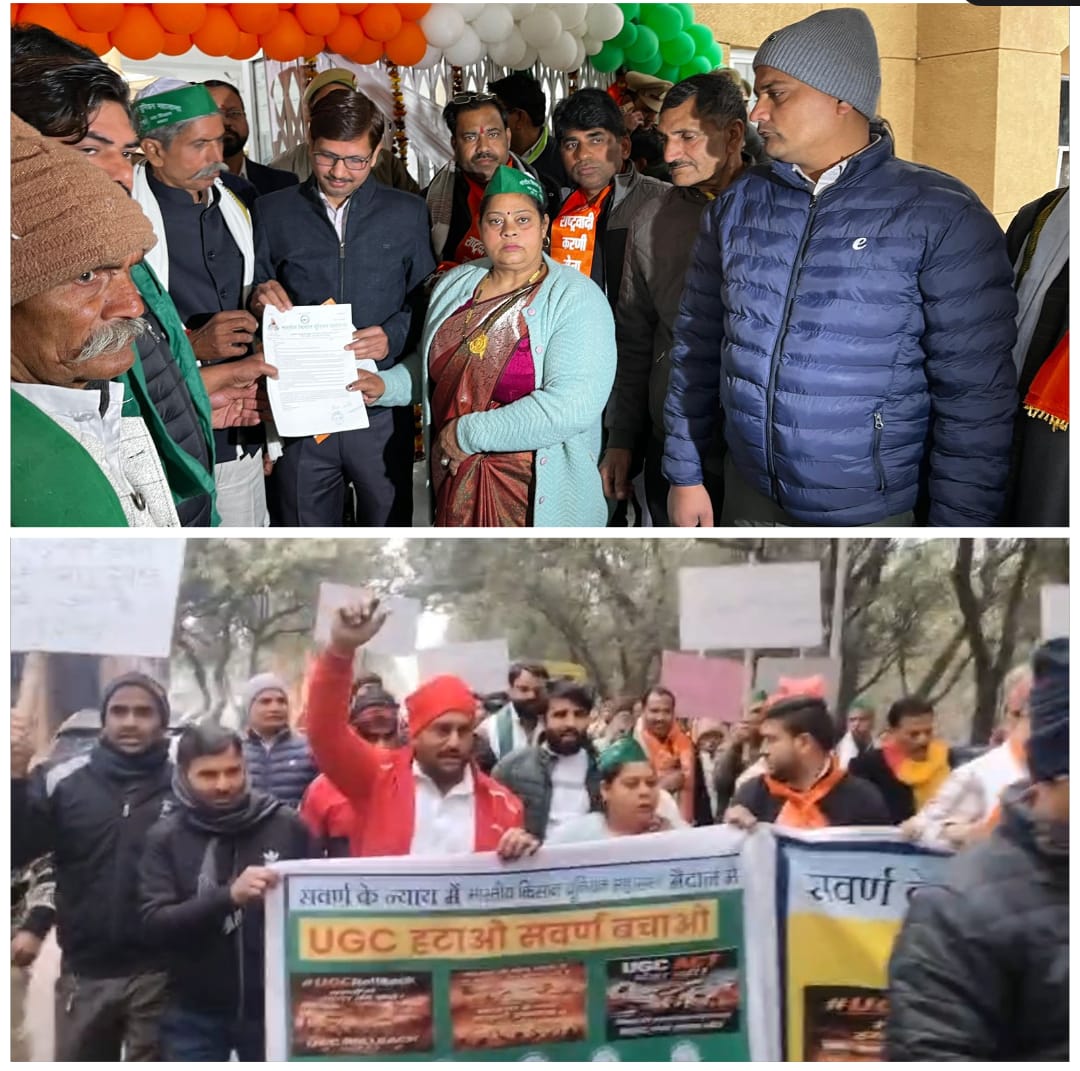 ग्रेटर नोएडा ।भारतीय किसान यूनियन महासभा द्वारा यूजीसी बिल 2026 के खिलाफ एलजी गोलचक्कर से डीएम कार्यालय तक ज़ोरदार पैदल मार्च निकाला गया। यह मार्च संगठन की राष्ट्रीय अध्यक्ष गीता भाटी के नेतृत्व में सम्पन्न हुआ। मार्च के बाद जिलाधिकारी गौतम बुद्ध नगर को राष्ट्रपति के नाम एक ज्ञापन सौंपा गया।इस अवसर पर वक्ताओं ने कहा कि यूजीसी बिल 2026 स्वर्ण समाज सहित पूरे देश के मेहनतकश, किसान और मध्यम वर्ग के साथ सीधा धोखा है। यह बिल शिक्षा व्यवस्था को केंद्रीकृत कर, योग्यता आधारित व्यवस्था को कमजोर करता है और सामाजिक संतुलन को बिगाड़ने का काम करता है।भारतीय किसान यूनियन महासभा ने स्पष्ट कहा कि स्वर्ण समाज इस बिल के पूरी तरह विरोध में है और किसी भी कीमत पर इसे लागू नहीं होने दिया जाएगा।संगठन के नेताओं ने बताया कि इस बिल के लागू होने से: विश्वविद्यालयों की स्वायत्तता समाप्त हो जाएगी मेरिट आधारित शिक्षा प्रणाली को नुकसान पहुंचेगा स्वर्ण समाज सहित सामान्य वर्ग के छात्रों के अवसर सीमित हो जाएंगे शिक्षा का निजीकरण बढ़ेगा, जिससे गरीब और किसान परिवारों के बच्चों की उच्च शिक्षा और दूर हो जाएगी शिक्षकों की नियुक्ति और शिक्षा की गुणवत्ता पर गंभीर प्रभाव पड़ेगा।किसान नेताओं ने कहा कि सरकार ने बिना समाज के सभी वर्गों से संवाद किए बिना यह बिल लाने का प्रयास किया है, जो लोकतंत्र की भावना के खिलाफ है।सभी वक्ताओं ने एक स्वर में कहा कि यूजीसी बिल 2026 को तुरंत वापस लिया जाए। यदि सरकार ने इस बिल को वापस नहीं लिया, तो स्वर्ण समाज के नेतृत्व में देश के अलग-अलग हिस्सों में ज़ोरदार आंदोलन किए जाएंगे, जिसकी पूरी जिम्मेदारी सरकार की होगी। अंत में संगठन ने चेतावनी दी कि यह लड़ाई केवल शिक्षा की नहीं, बल्कि भविष्य, अधिकार और सामाजिक न्याय की लड़ाई है, जिसे हर हाल में लड़ा जाएगा। इस विरोध प्रदर्शन में करण ठाकुर – राष्ट्रीय अध्यक्ष (युवा), डॉ. लोकेंद्र – राष्ट्रीय प्रवक्ता, सादिक खान – प्रदेश उपाध्यक्ष, फैज़ुल भाटी – राष्ट्रीय सचिव, बिजेंद्र कसाना – राष्ट्रीय सचिव, मिथलेश सिंह – जिला अध्यक्ष (महिला),मुजाहिद – मीडिया प्रभारी,इंतजार सोलंकी, मोहित नागर, दीपक शर्मा (एडवोकेट) भी शामिल हुए