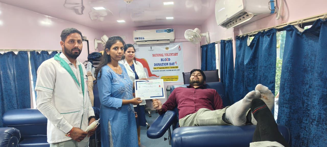 ग्रेटर नोएडा ।रक्त न केवल एक मूल्यवान संसाधन है, बल्कि यह एक जीवन रक्षक संसाधन है। 7 सितंबर से 2 अक्टूबर (गांधी जयंती) 2025 तक आयोजित किए जा रहे राष्ट्रव्यापी मेगा स्वैच्छिक रक्तदान अभियान को ध्यान में रखते हुए सरकारी चिकित्सा विज्ञान संस्थान (जीआईएमएस), ग्रेटर नोएडा ने 23 सितंबर 2025 को टाटा कंसल्टिंग इंजीनियर्स लिमिटेड, ग्रीन बुलेवार्ड सेक्टर-62, नोएडा में सुबह 10:00 बजे से शाम 04:00 बजे तक राष्ट्रीय थैलेसीमिया कल्याण सोसाइटी, नई दिल्ली के सहयोग से एक स्वैच्छिक रक्तदान शिविर का आयोजन किया। यह शिविर सुरक्षित स्वैच्छिक रक्तदान की महत्वपूर्ण आवश्यकता के बारे में जागरूकता बढ़ाने और ज़रूरतमंद रोगियों के लिए रक्त घटकों की पर्याप्त आपूर्ति सुनिश्चित करने के लिए आयोजित किया गया था। इस शिविर ने थैलेसीमिया कल्याण सोसाइटी द्वारा थैलेसीमिया के बारे में मुफ्त स्क्रीनिंग और जागरूकता भी प्रदान की। कुल 40 संभावित दाताओं की जांच की गई, जिनमें से 33 को फिट पाया गया। अंत में रक्त की 33 इकाइयां एकत्र की गईं। महिलाएं भी दान करने के लिए निकलीं, 5 फिट थीं जबकि 5 एनीमिया के कारण दान करने के लिए अयोग्य पाए गए थे। शिविर का संचालन डॉ. की देखरेख में किया गया था। शालिनी बहादुर, प्रोफेसर पैथोलॉजी और ब्लड सेंटर के प्रभारी, डॉ। दीक्षा सिंह, वरिष्ठ निवासी, पैथोलॉजी जीआईएमएस, ग्रेटर नोएडा के तकनीकी कर्मचारियों के साथ। शालिनी बहादुर ने सभी रक्तदाताओं को दान के बाद परामर्श और प्रशंसा का टोकन प्रदान किया। हम मोनिशा गोगोई (परियोजना अधिकारी) राष्ट्रीय थैलेसीमिया कल्याण सोसायटी, नई दिल्ली के समन्वय, संगठन और शिविर के संचालन में उनके अथक प्रयासों के लिए आभारी हैं। यह हमारे सभी रोगियों को समय पर और पर्याप्त मात्रा में सुरक्षित रक्त प्रदान करने के लिए रक्त केंद्र जीआईएमएस का प्रयास है।