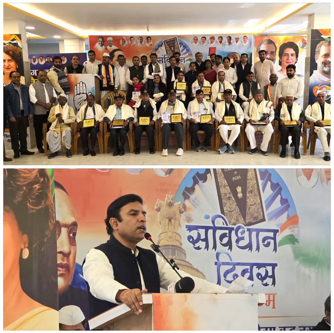 ग्रेटर नोएडा ।संविधान दिवस के अवसर पर जिला कांग्रेस कमेटी गौतमबुद्धनगर मुख्यालय ग्रेटर नोएडा वेस्ट पर कार्यक्रम का आयोजन किया गया। कार्यक्रम की मूल भावना भारत के संविधान के मूल्यों—न्याय, स्वतंत्रता, समानता और बंधुत्व को जन-जन तक पहुंचाना एवं नागरिकों को लोकतांत्रिक कर्तव्यों के प्रति जागरूक करना रही।कार्यक्रम की अध्यक्षता जिला कांग्रेस कमेटी गौतमबुद्ध नगर के अध्यक्ष दीपक भाटी चोटीवाला ने की। कार्यक्रम में बड़ी संख्या में पार्टी कार्यकर्ता, स्थानीय बुद्धिजीवी, सामाजिक संगठनों के प्रतिनिधि, अध्यापक, वरिष्ठ नागरिक एवं युवा उपस्थित रहे।कार्यक्रम की शुरुआत राष्ट्रगान एवं संविधान की प्रस्तावना के सामूहिक वाचन से हुई। सभी उपस्थित लोगों ने संविधान के प्रति अपनी निष्ठा दोहराते हुए मूल्यों को जीवन में उतारने का संकल्प लिया। जिला कांग्रेस कमेटी ने राष्ट्र निर्माण में महत्वपूर्ण योगदान देने वाले पूर्व सैनिकों, सामाजिक कार्यकर्ताओं, तथा अध्यापकों को विशेष सम्मान प्रदान किया। सम्मानित व्यक्तियों को शॉल, एवं स्मृति चिह्न देकर अभिनंदन किया गया।जिला कांग्रेस अध्यक्ष दीपक भाटी चोटीवाला ने अपने संबोधन में कहा कि राष्ट्र की रक्षा करने वाले सैनिक, समाज को दिशा देने वाले शिक्षक और समाज सुधार में लगे कार्यकर्ता ही संविधान के वास्तविक संरक्षक हैं। उन्होंने कहा कि भारत का संविधान केवल एक दस्तावेज नहीं, बल्कि देश की आत्मा है। उन्होंने सभी कार्यकर्ताओं से अपील की कि वे जनता को संवैधानिक अधिकारों और कर्तव्यों के प्रति जागरूक करें और लोकतांत्रिक मूल्यों की रक्षा के लिए लगातार कार्यरत रहें।