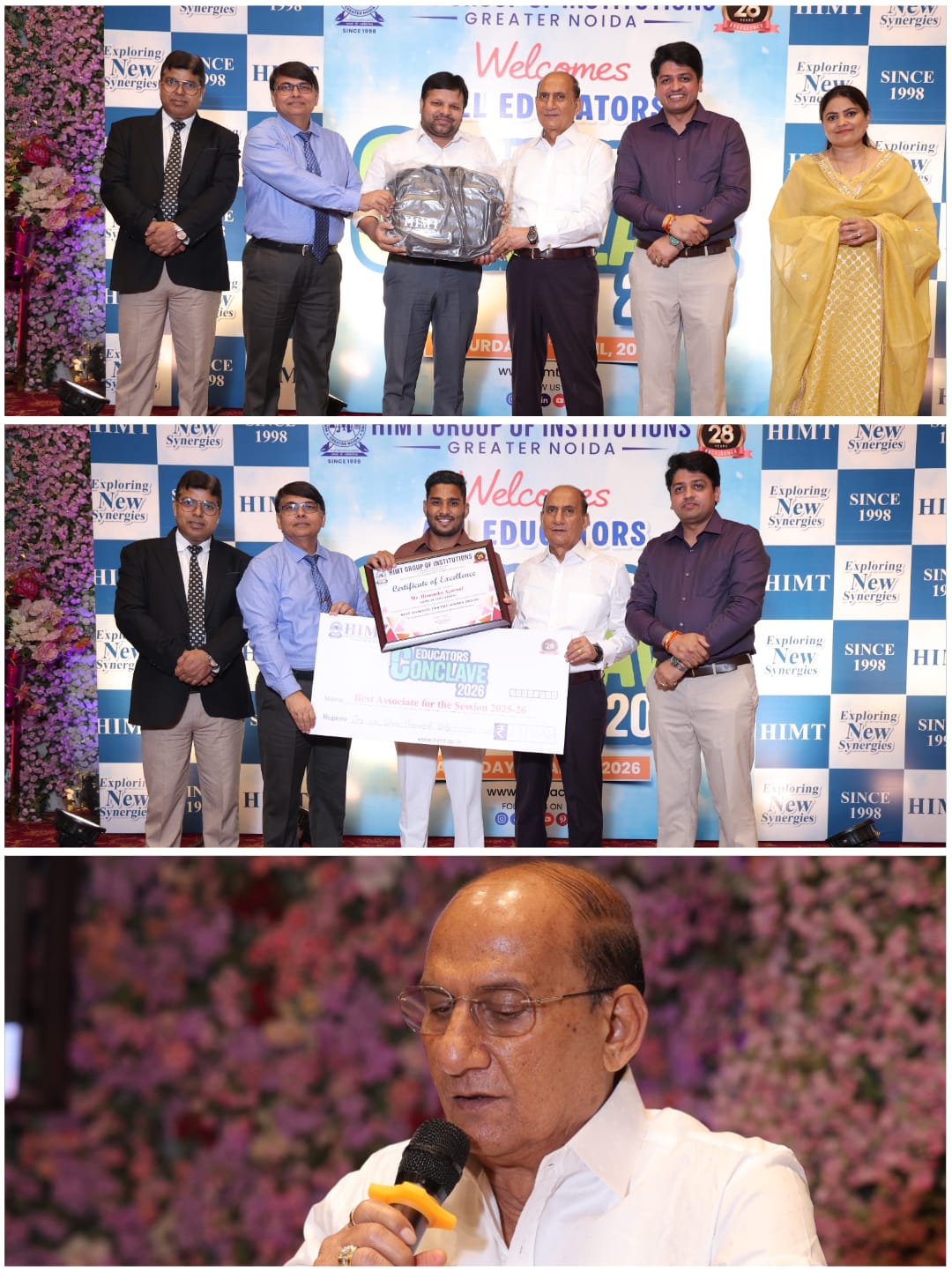 ग्रेटर नोएडा। एचआईएमटी ग्रुप ऑफ इंस्टीट्यूशंस द्वारा 4 अप्रैल 2026 को शेवरॉन, नोएडा में देशभर से जुड़े अपने सहयोगियों (Associates) को सम्मानित करने हेतु एक भव्य एजुकेटर्स कॉन्क्लेव का आयोजन किया गया। यह आयोजन एक शानदार एवं यादगार संध्या के रूप में संपन्न हुआ, जिसमें ग्रैंड डिनर के साथ कॉकटेल पार्टी का भी विशेष आयोजन किया गया। कार्यक्रम के दौरान सभी सहयोगियों को उनके उत्कृष्ट योगदान के लिए आकर्षक उपहारों से सम्मानित किया गया। सत्र 2025-26 के सर्वश्रेष्ठ सहयोगी (बेस्ट एसोसिएट ) का सम्मान हिमांशु अग्रवाल को प्रदान किया गया, जिन्हें 1 लाख 11 हजार रुपये की नकद पुरस्कार राशि से सम्मानित किया गया।संस्थान के चेयरमैन एच. एस. बंसल ने सभी सहयोगियों के योगदान की सराहना करते हुए उनके प्रति आभार व्यक्त किया और भविष्य में एचआईएमटी के साथ और अधिक सुदृढ़ सहयोग की कामना की।ग्रुप डायरेक्टर प्रो. (डॉ.) सुधीर कुमार ने भी सभी सहयोगियों का धन्यवाद ज्ञापित करते हुए उनके निरंतर सहयोग और समर्पण की सराहना की। इस भव्य समारोह में एग्जीक्यूटिव डायरेक्टर डॉ. विक्रांत चौधरी, डायरेक्टर मैनेजमेंट स्टडीज प्रो. (डॉ.) पंकज कुमार, एडमिनिस्ट्रेटिव ऑफिसर कविता चौधरी तथा विकास नेहरा की गरिमामयी उपस्थिति रही। यह आयोजन एचआईएमटी परिवार और उसके सहयोगियों के बीच मजबूत संबंधों और साझा विकास की दिशा में एक महत्वपूर्ण कदम सिद्ध हुआ।