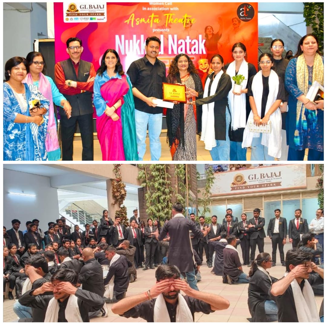 ग्रेटर नोएडा ।जीएल बजाज इंस्टिट्यूट ऑफ़ मैनेजमेंट एंड रिसर्च के महिला प्रकोष्ठ द्वारा अंतर्राष्ट्रीय महिला दिवस के उपलक्ष्य में अस्मिता थिएटर के सहयोग से “दस्तक” शीर्षक से एक प्रभावशाली नुक्कड़ नाटक का आयोजन किया गया।नुक्कड़ नाटक “दस्तक” के माध्यम से समाज में महिलाओं से जुड़े महत्वपूर्ण मुद्दों, लैंगिक समानता, सम्मान और सशक्तिकरण जैसे विषयों को प्रभावी ढंग से प्रस्तुत किया गया। कलाकारों ने अपनी सशक्त अभिव्यक्ति, संवाद और जीवंत प्रस्तुति से उपस्थित छात्रों एवं प्राध्यापकों को गहराई से प्रभावित किया। नाटक ने दर्शकों को आत्ममंथन के लिए प्रेरित किया और सामाजिक बदलाव की दिशा में सकारात्मक सोच विकसित करने का संदेश दिया। संस्थान की निदेशक डॉ. सपना राकेश, निदेशक, जीएल बजाज इंस्टिट्यूट ऑफ़ मैनेजमेंट एंड रिसर्च ने अपने संदेश में कहा कि ऐसे सामाजिक एवं जागरूकता आधारित कार्यक्रम विद्यार्थियों में संवेदनशीलता, नेतृत्व क्षमता और उत्तरदायित्व की भावना विकसित करते हैं। उन्होंने महिला प्रकोष्ठ और अस्मिता की टीम को इस सार्थक पहल के लिए बधाई दी। कार्यक्रम की शुरुआत महिला प्रकोष्ठ द्वारा कलाकारों के स्वागत के साथ हुई। आभार स्वरूप कलाकारों को पौधा भेंट कर सम्मानित किया गया, जो विकास, आशा और सशक्तिकरण का प्रतीक है। कार्यक्रम के अंत में महिला प्रकोष्ठ ने अस्मिता थिएटर की टीम, विद्यार्थियों एवं समस्त संकाय सदस्यों का आभार व्यक्त किया। यह आयोजन न केवल महिला दिवस के महत्व को रेखांकित करता है, बल्कि समाज में समानता और सम्मान की भावना को सुदृढ़ करने की दिशा में एक सार्थक प्रयास भी है।