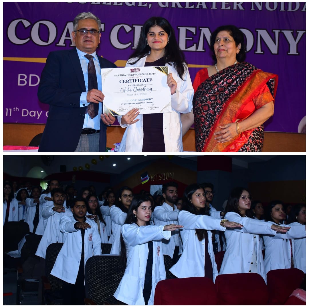 ग्रेटर नोएडा ।आई0टी0एस0 डेंटल कॉलेज, ग्रेटर नोएडा में व्हाइट कोट सेरेमनी और मेरिट पुरस्कार वितरण समारोह का आयोजन किया गया।इस समारोह में विशिष्ट अतिथि यूनिवर्सिटी कॉलेज ऑफ मेडिकल साइंसेज़ एवं जीटीबी हॉस्पिटल, नई दिल्ली की पीडोडॉन्टिक्स एंड प्रिवेंटिव डेंटिस्ट्री विभाग की पूर्व प्रोफेसर एवं विभागाध्यक्ष डॉ० नमिता कालरा, आई०टी०एस० द एजुकेशन ग्रुप के उपाध्यक्ष श्री सोहिल चडढा, सचिव श्री बी0 के0 अरोरा, निदेशक पब्लिक रिलेशन सुरेन्द्र सूद, संस्थान के प्रधानाचार्य डॉ सचित आनंद अरोरा एवं डेंटल और मेडिकल विभागों के सभी विभागाध्यक्ष, संस्थान के सभी शिक्षकों के अतिरिक्त संस्थान में अध्ययनरत बी०डी०एस० तृतीय वर्ष के सभी छात्रों और उनके अभिभावकों ने भाग लिया।इस अवसर पर डॉ0 नमिता कालरा ने कहा कि यह दिन प्रत्येक चिकित्सा छात्र के जीवन में एक महत्वपूर्ण पड़ाव है। सफेद कोट केवल वस्त्र नहीं, बल्कि सेवा, करूणा, और जिम्मेदारी का प्रतीक है। इस कोट को पहनते ही छात्र प्रण लेते हैं कि वे सदैव अपने रोगियों की देखभाल ईमानदारी और संवेदनशीलता से करेंगे। उन्होंने कहा कि चिकित्सा पेशा केवल ज्ञान का नहीं, बल्कि मानवीय मूल्यों का भी प्रतीक है। डॉ० कालरा ने कहा कि यह एक ऐसा अवसर है जहां से उनके पेशेवर यात्रा शुरू होती है। सफेछ कोट पहनना केवल सम्मान नहीं, बल्कि समाज के प्रति दायित्व का प्रतीक है। एक दंत चिकित्सक की असली पहचान उसके ज्ञान के साथ-साथ उसकी करूणा और ईमानदारी में निहित होती है।