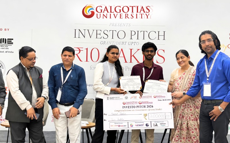 ग्रेटर नोएडा, मार्च 2026। गलगोटिया विश्वविद्यालय ने 17-18 मार्च 2026 को दो दिवसीय कार्यक्रम “गलगोटिया इन्वेस्टो पिच 2026” का सफल आयोजन किया। इस कार्यक्रम का उद्देश्य युवाओं में नवाचार और उद्यमिता को बढ़ावा देना था। इसमें उभरते उद्यमियों को अपने विचार प्रस्तुत करने और निवेशकों व उद्योग विशेषज्ञों से जुड़ने का अवसर मिला। कार्यक्रम में इंडिकॉर्न एंजेल्स के पार्टनर अमित सिंगल, सेटमायकार्ट के संस्थापक तुषार वडेरा और एसीआईसी जीआईईटी यूनिवर्सिटी फाउंडेशन के सीईओ रविंद्र यादव जैसे विशेषज्ञों ने भाग लिया। उन्होंने स्टार्टअप्स को अपने व्यवसाय को आगे बढ़ाने, निवेश प्राप्त करने और बाजार में उतरने के लिए मार्गदर्शन दिया। विशेषज्ञों ने बताया कि स्टार्टअप्स भविष्य की अर्थव्यवस्था और रोजगार सृजन में महत्वपूर्ण भूमिका निभाते हैं। उन्होंने यह भी कहा कि शैक्षणिक संस्थानों का उद्यमिता को बढ़ावा देने में अहम योगदान है। बिजनेस इन्क्यूबेशन, मेंटरशिप और वित्तीय सहायता को मजबूत स्टार्टअप बनाने के लिए जरूरी बताया गया। कार्यक्रम के दूसरे दिन एमएसएमई-डीएफओ ओखला, नई दिल्ली के निदेशक डॉ. आर.के. भारती मुख्य अतिथि के रूप में शामिल हुए, जबकि उप निदेशक सुनील कुमार विशिष्ट अतिथि रहे। उन्होंने सरकार की विभिन्न फंडिंग योजनाओं और नई इकाइयों के लिए उपलब्ध नीतिगत सहयोग की जानकारी दी। इसके अलावा एंटरप्राइज माइंड्स इंक की एआई प्रैक्टिस लीडर मधु वडलामनी ने व्यवसाय को अधिक प्रभावी और कम लागत वाला बनाने में आर्टिफिशियल इंटेलिजेंस की भूमिका पर प्रकाश डाला।इस अवसर पर गलगोटिया विश्वविद्यालय ने 12 शुरुआती स्टार्टअप्स को कुल 18.5 लाख रुपये का अनुदान देने की घोषणा की। इसमें SMARTFEED+ (2 लाख), URVAH Dynamics Pvt. Ltd. (1.5 लाख), Gas O Detech (2 लाख), Amigos Renewable Energy LLP (2.5 लाख), ECO-SIP (1.25 लाख), Load Cell Based Smart IV Fluid Monitoring System (1.25 लाख), Wilexir Techno LLP (1.5 लाख), Electric VE (1.5 लाख), Desk N Wood Techno Solutions (1.5 लाख), Mumma.AI (1 लाख), Novatrail LLP (1.5 लाख) और AgriRover (1 लाख) शामिल हैं। कार्यक्रम की सफलता गलगोटिया विश्वविद्यालय की नवाचार को बढ़ावा देने और नए उद्यमियों को तैयार करने की मजबूत प्रतिबद्धता को दर्शाती है।