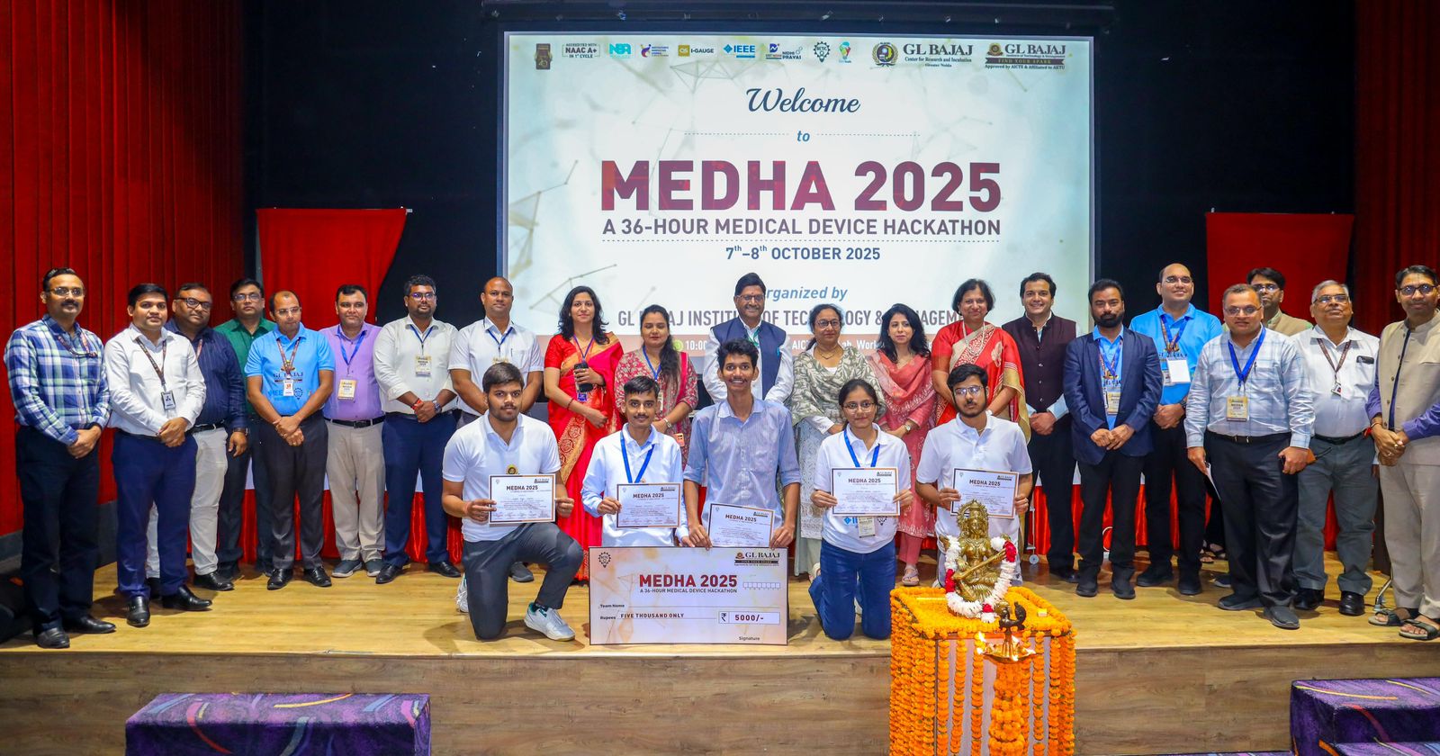 ग्रेटर नोएडा ।मेधा 2025: मेडिकल डिवाइस हैकथॉन का सफलतापूर्वक आयोजन 7-8 अक्टूबर 2025 को जीएल बजाज इंस्टीट्यूट ऑफ़ टेक्नोलॉजी एंड मैनेजमेंट, ग्रेटर नोएडा में बायोमेडिकल इंजीनियरिंग एंड टेक्नोलॉजी इनक्यूबेशन सेंटर (बीईटीआईसी), आईआईटी बॉम्बे के सहयोग से किया गया था।इस 36 घंटे की नवाचार मैराथन ने मैकेनिकल, इलेक्ट्रॉनिक्स, इलेक्ट्रिकल, फिजियोथेरेपी, मेडिसिन, साइंस और फार्मेसी सहित विभिन्न क्षेत्रों के 150 से अधिक प्रतिभागियों को एक साथ लाया। इस कार्यक्रम का उद्देश्य रचनात्मक समस्या-समाधान और सहयोग के माध्यम से स्वास्थ्य देखभाल चुनौतियों और इंजीनियरिंग नवाचार के बीच की खाई को पाटना था।उद्घाटन समारोह में एस. मुख्य अतिथि के रूप में मिश्रा, जिन्होंने छात्रों को वास्तविक दुनिया के स्वास्थ्य देखभाल प्रभाव के लिए प्रौद्योगिकी के साथ करुणा को संयोजित करने के लिए प्रेरित किया। समापन समारोह में सरकारी चिकित्सा विज्ञान संस्थान (जीआईएमएस) के निदेशक ब्रिगेडियर राकेश गुप्ता को शामिल किया गया, जिन्होंने नवाचार और अंतःविषय टीम वर्क की भावना की सराहना की।