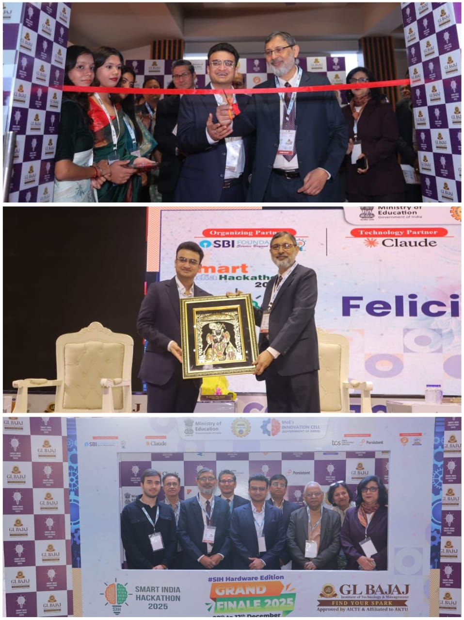ग्रेटर नोएडा। जीएल बजाज इंस्टीट्यूट ऑफ टेक्नोलॉजी एंड मैनेजमेंट जो स्मार्ट इंडिया हैकाथॉन 2025 – हार्डवेयर एडिशन के लिए नोडल सेंटर के रूप में कार्य कर रहा है, ने पाँच दिवसीय राष्ट्रीय स्तर के हैकाथॉन का उत्साह और व्यापक भागीदारी के साथ उद्घाटन किया।कार्यक्रम की महत्ता को और बढ़ाते हुए, राष्ट्रीय उद्घाटन का वर्चुअल संबोधन AICTE के चेयरमैन प्रो. टी. जी. सिथाराम द्वारा किया गया, जिन्होंने देशभर के प्रतिभागियों को शुभकामनाएँ दीं।कुल 9 राज्यों के 26 टीमों के 156 प्रतिभागी मंत्रालय द्वारा दिए गए वास्तविक समस्याओं के समाधान विकसित करने के लिए परिसर में एकत्र हुए हैं। ये समस्याएँ सामाजिक न्याय और अधिकारिता मंत्रालय द्वारा प्रस्तुत की गई हैं।GLBITM में आयोजित उद्घाटन समारोह में मुख्य अतिथि डॉ. अमितावा सेन गुप्ता, पूर्व CSIIR, नेशनल फिजिकल लेबोरेटरी, नई दिल्ली, उपस्थित रहे। अपने प्रेरणादायक संबोधन में उन्होंने युवा नवोन्मेषकों को रचनात्मकता, कौशल और जुनून के साथ मंत्रालय द्वारा दिए गए पाँच महत्वपूर्ण समस्या वक्तव्यों को हल करने का आह्वान किया। उन्होंने प्रतिभागियों को पूरे कार्यक्रम के दौरान उत्साह, सहयोग और तकनीकी उत्कृष्टता बनाए रखने के लिए प्रेरित किया, ताकि राष्ट्रीय स्तर पर प्रभाव डालने वाले समाधान विकसित हो सकें।