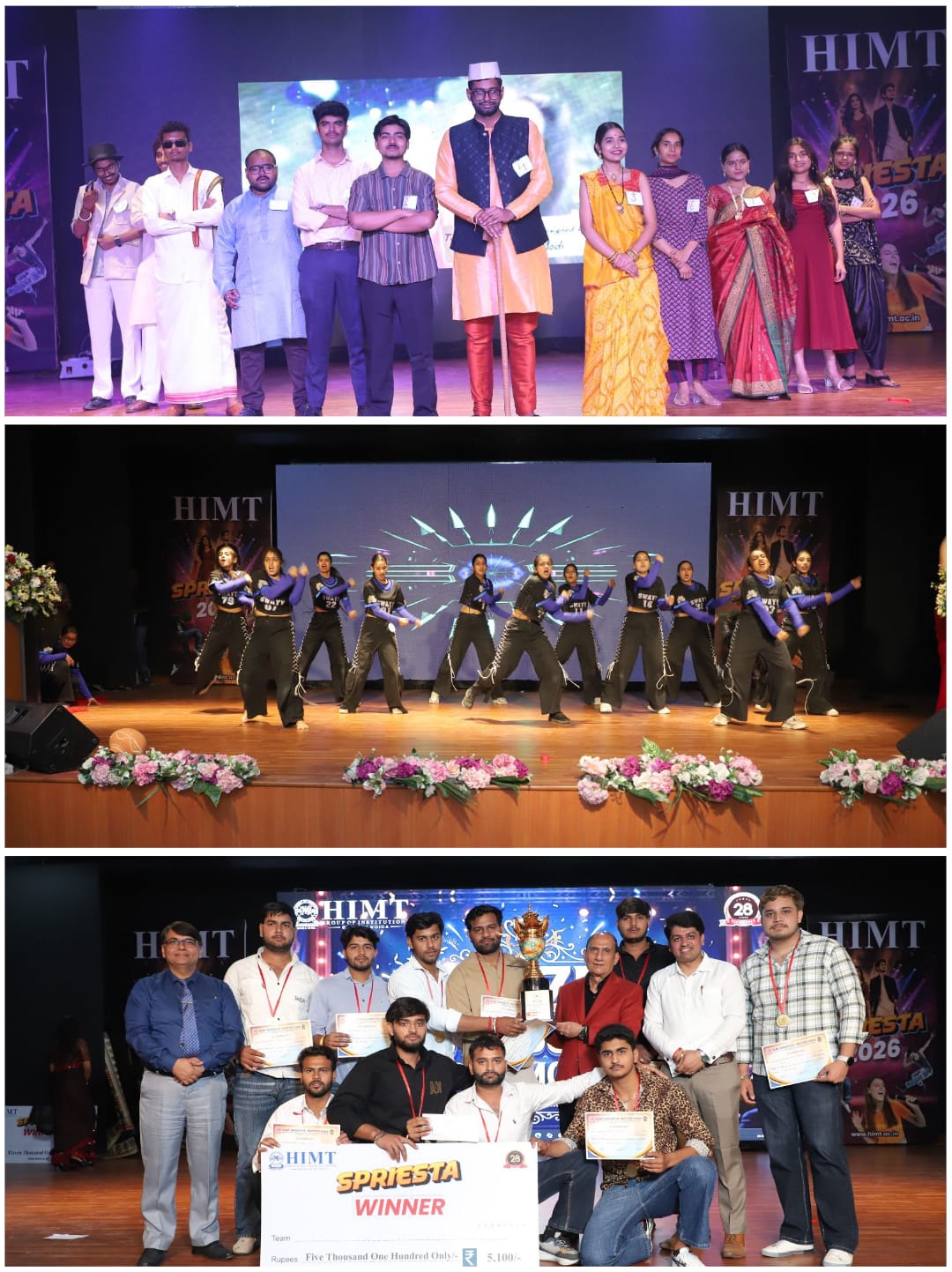 वॉलीबॉल (बालक वर्ग) में गलगोटियास विश्वविद्यालय ने उत्कृष्ट प्रदर्शन करते हुए विजेता का खिताब अपने नाम किया, जबकि गौतम बुद्ध विश्वविद्यालय उपविजेता रहा। वॉलीबॉल (बालिका वर्ग) में नोएडा इंटरनेशनल यूनिवर्सिटी ने जीत हासिल की और SDGI ग्लोबल यूनिवर्सिटी उपविजेता रही। कबड्डी (बालक वर्ग) में जे.सी. बोस यूनिवर्सिटी ने अपनी ताकत और रणनीति का शानदार प्रदर्शन करते हुए विजय प्राप्त की, जबकि SDGI ग्लोबल यूनिवर्सिटी उपविजेता रही। कबड्डी (बालिका वर्ग) में NIET ने प्रथम स्थान प्राप्त किया और संस्कार एजुकेशनल ग्रुप उपविजेता रहा।बास्केटबॉल (बालक वर्ग) में आर्य कॉलेज, पानीपत विजेता रहा, जबकि इनोवेटिव इंस्टीट्यूट उपविजेता रहा। बास्केटबॉल (बालिका वर्ग) में NIET ने जीत दर्ज की और गौतम बुद्ध विश्वविद्यालय उपविजेता रहा। टग ऑफ वॉर (बालक वर्ग) में HIMT ने अपनी एकजुटता और शक्ति का परिचय देते हुए विजय प्राप्त की, जबकि IMS गाजियाबाद उपविजेता रहा। टग ऑफ वॉर (बालिका वर्ग) में दिल्ली यूनिवर्सिटी SOL विजेता रही और HIMT उपविजेता रहा। 100 मीटर दौड़ (बालक वर्ग) में IMI, ग्रेटर नोएडा ने पहला स्थान हासिल किया, जबकि इनोवेटिव इंस्टीट्यूट उपविजेता रहा। 100 मीटर दौड़ (बालिका वर्ग) में लेडी इरविन कॉलेज विजेता रहा और SDGI ग्लोबल यूनिवर्सिटी उपविजेता रही। बैडमिंटन (बालक एवं बालिका वर्ग) में IIMT, ग्रेटर नोएडा का दबदबा देखने को मिला, जहाँ दोनों वर्गों में उत्कृष्ट प्रदर्शन किया गया। लॉन्ग जंप (बालक वर्ग) में IMI, ग्रेटर नोएडा विजेता रहा और IIMT, ग्रेटर नोएडा उपविजेता रहा। लॉन्ग जंप (बालिका वर्ग) में लेडी इरविन कॉलेज ने प्रथम स्थान प्राप्त किया, जबकि गौतम बुद्ध विश्वविद्यालय उपविजेता रहा।कैरम प्रतियोगिता में ITS, ग्रेटर नोएडा विजेता रहा और HIMT उपविजेता रहा, जबकि चेस प्रतियोगिता में लॉयड, ग्रेटर नोएडा ने जीत हासिल की और GN ग्रुप ऑफ इंस्टीट्यूशंस उपविजेता रहा।सांस्कृतिक प्रतियोगिताओं में स्किट प्रतियोगिता में HIMT ने प्रथम स्थान प्राप्त किया, जबकि हरलाल स्कूल ऑफ लॉ उपविजेता रहा। फैशन शो में GNIOT ने विजेता का खिताब जीता और HIMT उपविजेता रहा।इस अवसर पर एचआईएमटी ग्रुप ऑफ इंस्टीट्यूशंस के चेयरमैन श्री एच. एस. बंसल ने सभी विजेताओं और प्रतिभागियों को हार्दिक बधाई देते हुए कहा कि स्प्रीएस्टा केवल एक उत्सव नहीं, बल्कि प्रतिभा, अनुशासन, टीमवर्क और सांस्कृतिक मूल्यों का उत्सव है। उन्होंने इस आयोजन को विद्यार्थियों के समग्र विकास का एक सशक्त मंच बताते हुए सभी संस्थानों, प्रतिभागियों और आयोजकों का आभार व्यक्त किया। तीन दिनों तक चले इस भव्य आयोजन का समापन अपार उत्साह, ऊर्जा और अविस्मरणीय स्मृतियों के साथ हुआ। स्प्रीएस्टा 2026 ने एक बार फिर यह सिद्ध कर दिया कि जब प्रत
