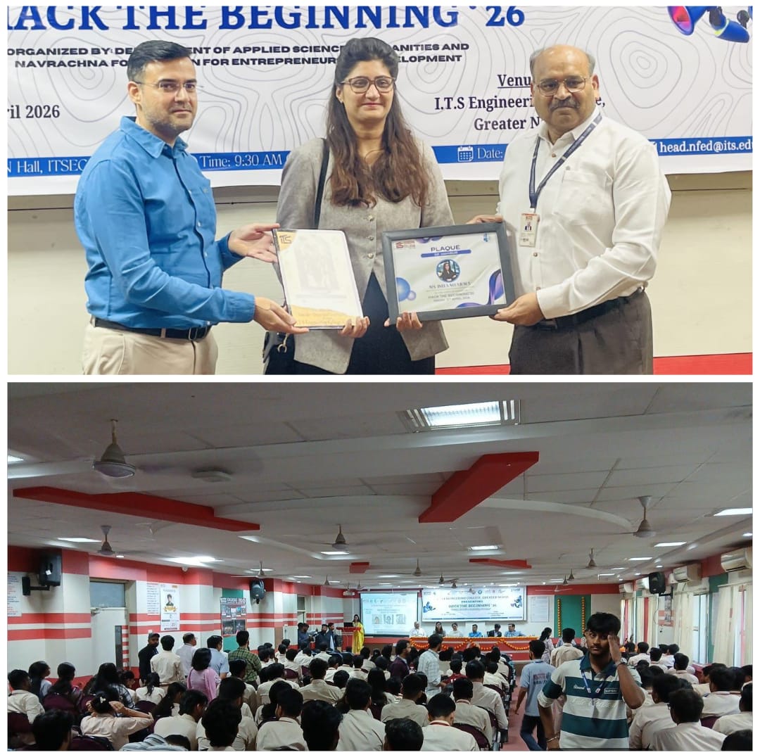 ग्रेटर नोएडा ।आई.टी.एस इंजीनियरिंग कॉलेज में प्रथम वर्ष के छात्रों के लिए आयोजित फ्लैगशिप हैकाथॉन “हैक द बिगिनिंग’26” का भव्य उद्घाटन बड़े उत्साह और गरिमा के साथ संपन्न हुआ। इस आयोजन का संचालन एप्लाइड साइंस एवं ह्यूमैनिटीज विभाग द्वारा नवाचार विकास संस्था नव रचना फाउंडेशन के सहयोग से किया गया।समारोह का उद्घाटन मुख्य अतिथि उपाध्यक्ष सोहिल चड्ढा सहित अन्य विशिष्ट अतिथियों की उपस्थिति में दीप प्रज्वलन एवं सरस्वती वंदना के साथ हुआ। इस शुभारंभ ने ज्ञान और नवाचार की दिशा में छात्रों को प्रेरित किया।कॉलेज के निदेशक डॉ. मयंक गर्ग ने स्वागत भाषण में संस्थान की “थिंकिंग प्रोफेशनल्स” तैयार करने की परंपरा पर प्रकाश डाला। विभागाध्यक्ष डॉ. ओ.पी. चौधरी ने छात्रों को तकनीकी ढांचे की जानकारी देते हुए उन्हें रचनात्मक सोच के साथ आगे बढ़ने का आह्वान किया।समारोह की प्रमुख आकर्षण रही न्यूरापेक्स एआई के संस्थापक जयवर्धन त्यागी की प्रेरणादायक प्रस्तुति। उन्होंने आर्टिफिशियल इंटेलिजेंस की संभावनाओं और इसके नैतिक पहलुओं पर प्रकाश डालते हुए छात्रों को वास्तविक जीवन की समस्याओं के समाधान हेतु स्केलेबल तकनीकी समाधान विकसित करने की प्रेरणा दी।