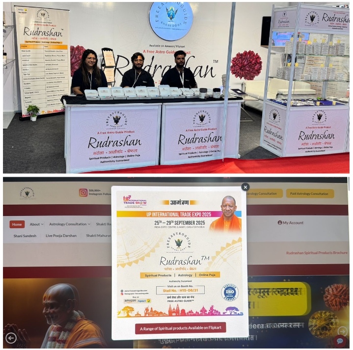 ग्रेटर नोएडा।ग्रेटर नोएडा में आयोजित यूपी इंटरनेशनल ट्रेड शो के तीसरे संस्करण में आज एक महत्वपूर्ण अवसर देखने को मिला, जब Free Astro Guide™️ के अंतर्गत आध्यात्मिक उत्पादों की प्रामाणिक श्रृंखला ‘रुद्राशन’ (Rudrashan™️) का भव्य प्री-लॉन्च किया गया।यह ट्रेड शो देश के प्रधानमंत्री श्री नरेंद्र मोदी जी एवं उत्तर प्रदेश के मुख्यमंत्री योगी आदित्यनाथ जी द्वारा उद्घाटित किया गया। इस ऐतिहासिक अवसर पर रुद्राशन के संस्थापक श्रीमती चांदनी कुलश्रेष्ठ एवं श्री प्रसून कुलश्रेष्ठ को भी उद्घाटन समारोह में आमंत्रित किया गया। रुद्राशन ट्रेडमार्क के अंतर्गत रुद्राक्ष, ज्योतिषीय ब्रेसलेट्स, शनि से जुड़े विशेष उत्पाद जैसे घोड़े की नाल, ताबीज़, यंत्र और विभिन्न आध्यात्मिक सामग्रियों को पेश किया गया। प्रत्येक रुद्राक्ष IGL प्रमाणपत्र और एक्स-रे प्रमाणिकता के साथ उपलब्ध होगा, जिससे इसकी प्रामाणिकता और विश्वास सुनिश्चित किया जा सके। संस्थापकों ने अपने धन्यवाद ज्ञापन में कहा कि “यूपी इंटरनेशनल ट्रेड एक्सपो, प्रदेश सरकार की एक अद्भुत पहल है, जिसने छोटे और बड़े निर्यातकों को एक ऐसा मूल्यवान मंच दिया है, जहां बिजनेस-टू-बिजनेस (B2B) और बिजनेस-टू-कंज्यूमर (B2C) दोनों मॉडल्स पर सीधा संवाद संभव है। उत्तर प्रदेश सरकार की ODOP (One District One Product) नीति भी ऐसे उत्पादों को वैश्विक मंच तक पहुँचाने में बेहद प्रभावशाली साबित हो रही है।” Free Astro Guide™️, जिसने अपनी सटीक ज्योतिषीय भविष्यवाणियों के जरिए पहले ही अंतरराष्ट्रीय स्तर पर ख्याति अर्जित की है, अब अपने आध्यात्मिक उत्पादों की रेंज के साथ नए आयाम गढ़ रहा है। कंपनी ने बताया कि रुद्राशन के उत्पाद अब वैश्विक मंचों पर, अमेज़न, फ्लिपकार्ट और अन्य ऑनलाइन माध्यमों के जरिए उपलब्ध होंगे और निर्यात पर विशेष ध्यान केंद्रित रहेगा। संस्थापकों ने अंत में कहा कि “यूपी सरकार की नीतियों और इस तरह के प्लेटफ़ॉर्म ने हमें भविष्य की ओर बढ़ने और वैश्विक स्तर पर भारत के आध्यात्मिक उत्पादों को स्थापित करने का अवसर प्रदान किया है।”