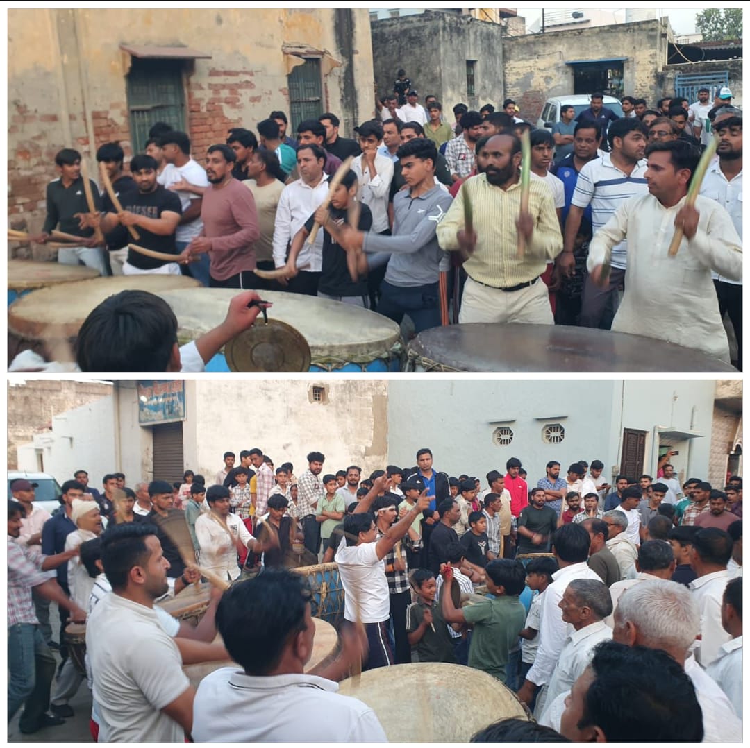 होली पर जुनेदपुर गांव में नगाड़े बजाकर मनाया होली का त्योहार
