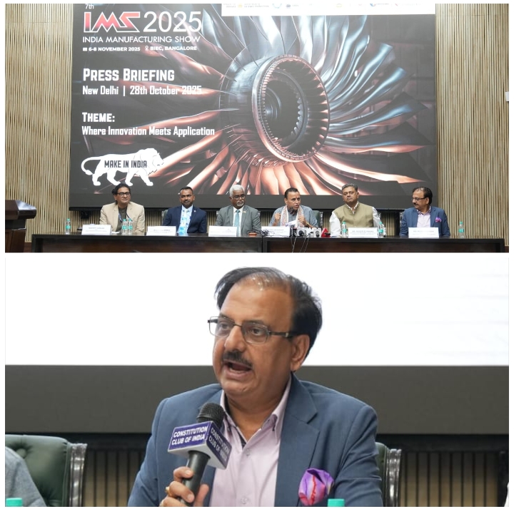 नई दिल्ली/ग्रेटर नोएडा। एयरोस्पेस, रक्षा और सामान्य इंजीनियरिंग क्षेत्रों के लिए भारत का प्रमुख व्यापार मेला, इंडिया मैन्युफैक्चरिंग शो (आईएमएस 2025) का सातवाँ संस्करण, 6-8 नवंबर, 2025 को बेंगलुरु अंतर्राष्ट्रीय प्रदर्शनी केंद्र (बीआईईसी), बेंगलुरु में आयोजित किया जाएगा। आईएमएस फाउंडेशन के सहयोग से लघु उद्योग भारती – कर्नाटक द्वारा आयोजित और रक्षा मंत्रालय, कर्नाटक सरकार और एमएसएमई मंत्रालय द्वारा समर्थित, इस आयोजन का उद्देश्य वैश्विक मंच पर भारत के विनिर्माण नेतृत्व को गति प्रदान करना है। इंडिया एक्सपोज़िशन मार्ट लिमिटेड (IEML) IMS 2025 का आधिकारिक आयोजन और मार्केटिंग पार्टनर है। इस शो का उद्घाटन रक्षा मंत्री श्री राजनाथ सिंह द्वारा किया जाएगा। इस अवसर पर माननीय भारी उद्योग एवं इस्पात मंत्री श्री एच.डी. कुमारस्वामी; माननीय उपभोक्ता मामले, खाद्य एवं सार्वजनिक वितरण, तथा नवीन एवं नवीकरणीय ऊर्जा मंत्री श्री प्रहलाद जोशी; और भारत सरकार में सूक्ष्म, लघु एवं मध्यम उद्यम राज्य मंत्री सुश्री शोभा करंदलाजे भी उपस्थित रहेंगी।