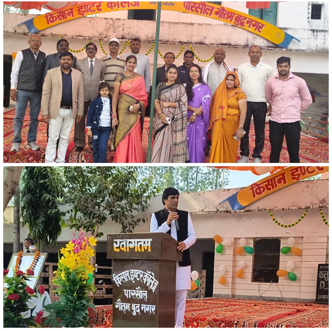 ग्रेटर नोएडा ।किसान इंटर कॉलेज पारसौल गौतमबुद्धनगर का 76वा स्थापना दिवस बड़ी धूमधाम से मनाया गया ।इस अवसर पर समाजसेवी राजीव अत्री , राष्ट्रीय लोक दल के जिला अध्यक्ष जनार्दन भाटी , मंडल अध्यक्ष इंद्रवीर सिंह एडवोकेट, उपाध्यक्ष अतुल चौधरी , एसडीएम सदर आशुतोष गुप्ता, एडीएम बच्चू सिंह ,नरेंद्र सिंह रिटायर्ड सार्जेंट ऑफिसर , भारतीय किसान यूनियन के प्रदेश उपाध्यक्ष राजीव मलिक , किसान आंदोलन से जुड़े मनवीर तेवतिया , तेजपाल सिंह भाटी प्रधानाचार्य सर्व इंटर कॉलेज दयानंतपुर, कॉलेज प्रबंधक धर्मपाल सिंह , प्रधानाचार्य यशपाल सिंह एवं समस्त स्टाफ और क्षेत्र से आए सैकड़ों गणमान्य व्यक्ति व अभिभावक गण उपस्थित रहे। छात्र-छात्राओं ने हर्षोल्लास के साथ विभिन्न सांस्कृतिक कार्यक्रम प्रस्तुत किये। अतिथि गणों एवं क्षेत्र के गणमान्य व्यक्तियों ने कॉलेज विकास के लिए लगभग 8:30 लाख रुपए का सहयोग प्रदान किया। कालेज प्रधानाचार्य श्री यशपाल सिंह ने कार्यक्रम का संचालन करते हुए सभी अतिथि गणों ,दानदाताओं और इस कॉलेज की 1950 में नींव रखने वाली पुण्य आत्माओं का सभी का आभार व्यक्त किया। और क्षेत्र के लोगों का कॉलेज विकास हेतु सहयोग देने के लिए आवाहन किया। कार्यक्रम की अध्यक्षता कर रहे अनूप सिंह जी एवं प्रबंधक धर्मपाल सिंह ने सभी का आभार व्यक्त किया।