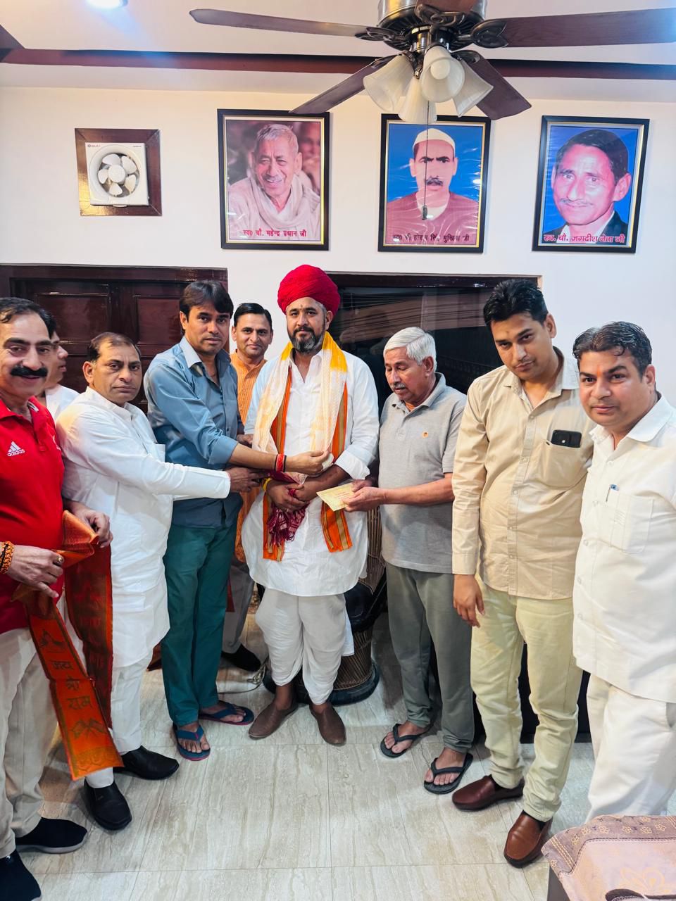 ग्रेटर नोएडा।गुर्जर समुदाय के लोक देवता व भगवान विष्णु जी के अवतार माने जाने वाले श्री देवनारायण भगवान के विश्व प्रसिद्ध मंदिर मालासेरी डूंगरी असींद जिला भीलवाड़ा राजस्थान से पधारे प्रमुख महंत श्रद्धेय महाराज हेमराज पोसवाल जी का धीरज प्रधान तुगलपुर के घर पर आगमन हुआ।इस अवसर पर गुर्जर समाज के प्रमुख नेताओं ने महाराज जी को पुष्पमाला एवं राम नाम अंकित पटका पहनाकर स्वागत किया और महाराज जी से आशीर्वाद प्राप्त किया।परम पूज्य महंत जी ने भगवान श्री देवनारायण जी से संबंधित अनेक चमत्कारों से हम सभी को अवगत कराया।इस अवसर पर संजय भैया चेयरमेन, धीरज प्रधान , देवेंद्र कसाना, रवि टाइगर, बबलू गुर्जर नेताजी, मनोज भाटी, मोहित भाटी, पंकज चोपड़ा , विनोद भाटी जी, रवि चेची, कमल पोसवाल व अन्य लोग उपस्थित रहे।