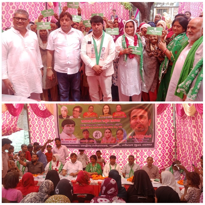 ग्रेटर नोएडा ।दादरी शहर के नई आबादी में राष्ट्रीय लोकदल पार्टी महिला प्रकोष्ठ की एक बैठक हुई है महिला प्रकोष्ठ की जिला अध्यक्ष रूबी जादौन ने दादरी नगर अध्यक्ष रिजवान मेवाती को मनोनीत किया इस मौके पर सैकड़ो महिलाओं ने राष्ट्रीय लोकदल पार्टी की सदस्यता ली बैठक में जिलाध्यक्ष जनार्दन भाटी ने कहा कि सदस्य अभियान के तहत जिले में हर समाज के बीच पार्टी को मजबूत करेंगे और पुरुष महिला में नवयुवक को अधिक से अधिक पार्टी से जोड़ेंगे 2026 में पंचायत चुनाव में मजबूती के साथ चुनाव लड़ेंगे इस मौके पर जिला अध्यक्ष जनार्दन भाटी फखरुद्दीन कोटिया हरवीर सिंह तालान गजेंद्र सिंह जसवीर भाटी जोगिंदर सिंह तालान धर्मेंद्र शर्मा जमीला बेगम रीमा नसीम मीना रुखसाना मदीना सहित सैकड़ो कार्यकर्ता उपस्थित