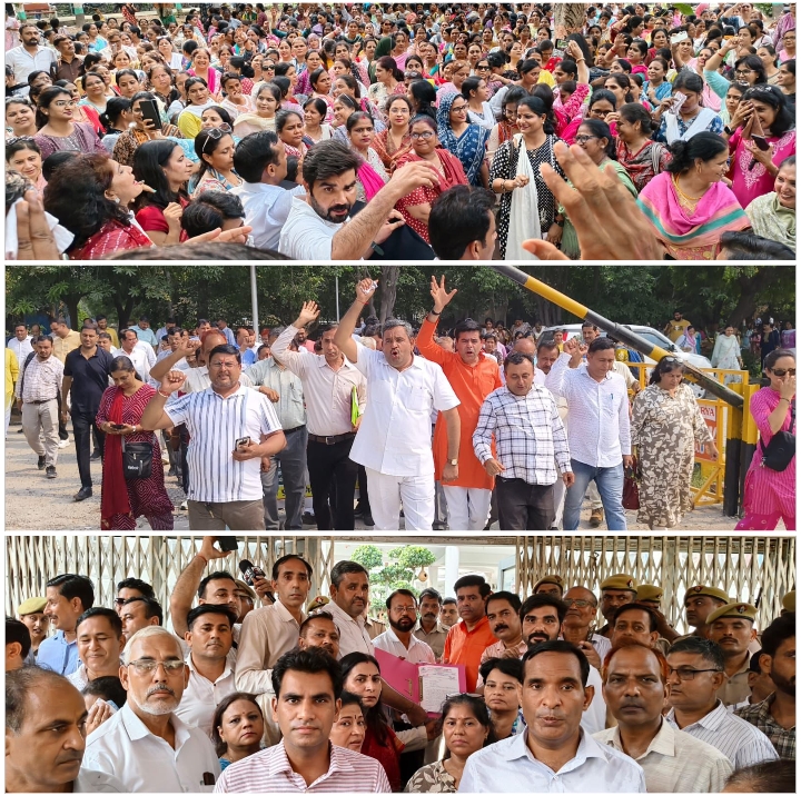 ग्रेटर नोएडा ।उत्तर प्रदेशीय प्राथमिक शिक्षक संघ गौतमबुद्धनगर में प्रदेशीय नेतृत्व के आह्वाहन पर मण्डल अध्यक्ष मेघराज भाटी की उपस्थिति एवं जिला अध्यक्ष प्रवीण शर्मा की के नेतृत्व में अनिवार्य टेट के विरोध में जिला मुख्यालय सूरजपुर गौतमबुद्धनगर पर जिलाधिकारी के माध्यम से प्रधानमंत्री के नाम से हज़ारों शिक्षकों द्वारा ज्ञापन दिया गया। धरने की अध्यक्षता मंडल अध्यक्ष मेघराज भाटी एवं मंच का संचालन जिला मंत्री गजन भाटी ने किया।ज्ञापन दिनांक 01 सितम्बर 2125 के माननीय न्यायालय के आदेश जिसमे 2011 से पूर्व नियुक्त सभी शिक्षक एवं प्रमोशन प्राप्त सभी शिक्षकों को अनिवार्य टेट के विरोध में ज्ञापन दिया। मुख्य सभी मुख्य वक्ताओं ने सरकार की नीति और नियत पर संदेह किया। मण्डल अध्यक्ष मेघराज भाटी ने कहा कि न्यायालय का आदेश शिक्षक विरोधी है। 2011 से पूर्व टेट की अनिवार्यता खत्म होनी चाहिए। जिला अध्यक्ष प्रवीण शर्मा ने कहा कि सरकार की नीति सही नहीं है। 2017 में जो काला कानून लाया गया है शिक्षक एव उनके परिवार के लिए घातक सिद्ध होगा इसलिए टेट की अनिवार्यता खत्म होनी चाहिए हम आगामी रणनीति पर विचार कर रहे है ।जिला मंत्री गजन भाटी ने बताया कि आज यह ज्ञापन जिला अधिकारी के माध्यम से प्रधानमंत्री को सम्पूर्ण प्रदेश के प्रत्येक जनपद में दिया गया है । टेट की परीक्षा लेना नियम विरुद्ध है।शिक्षक द्वारा नियुक्ति के समय प्रत्येक अहर्ता को पूरा किया।गौतमबुद्धनगर नगर में लगभग हजारों शिक्षको ने ज्ञापन में हिस्सा लिया है। इससे स्पस्ट है कि जनपद गौतमबुद्ध नगर का प्रत्येक शिक्षक उत्तर प्रदेशीय प्राथमिक शिक्षक संघ के साथ है। हम सरकार की अव्यावहारिक नीतियों का विरोध सदैव करते रहेंगे अपर जिला अधिकारी ने ज्ञापन प्राप्त कर हमें आश्वस्त किया कि ज्ञापन के माध्यम से हमारे पक्ष को प्रधानमंत्री तक भेजा जाएगा। इस अवसर पर समस्त जिला ,ब्लॉक,तहसील एवं संघर्ष समिति की समस्त कार्यकारिणी सहित जनपद के हजारों सम्मानित शिक्षकों ने प्रतिभाग किया।