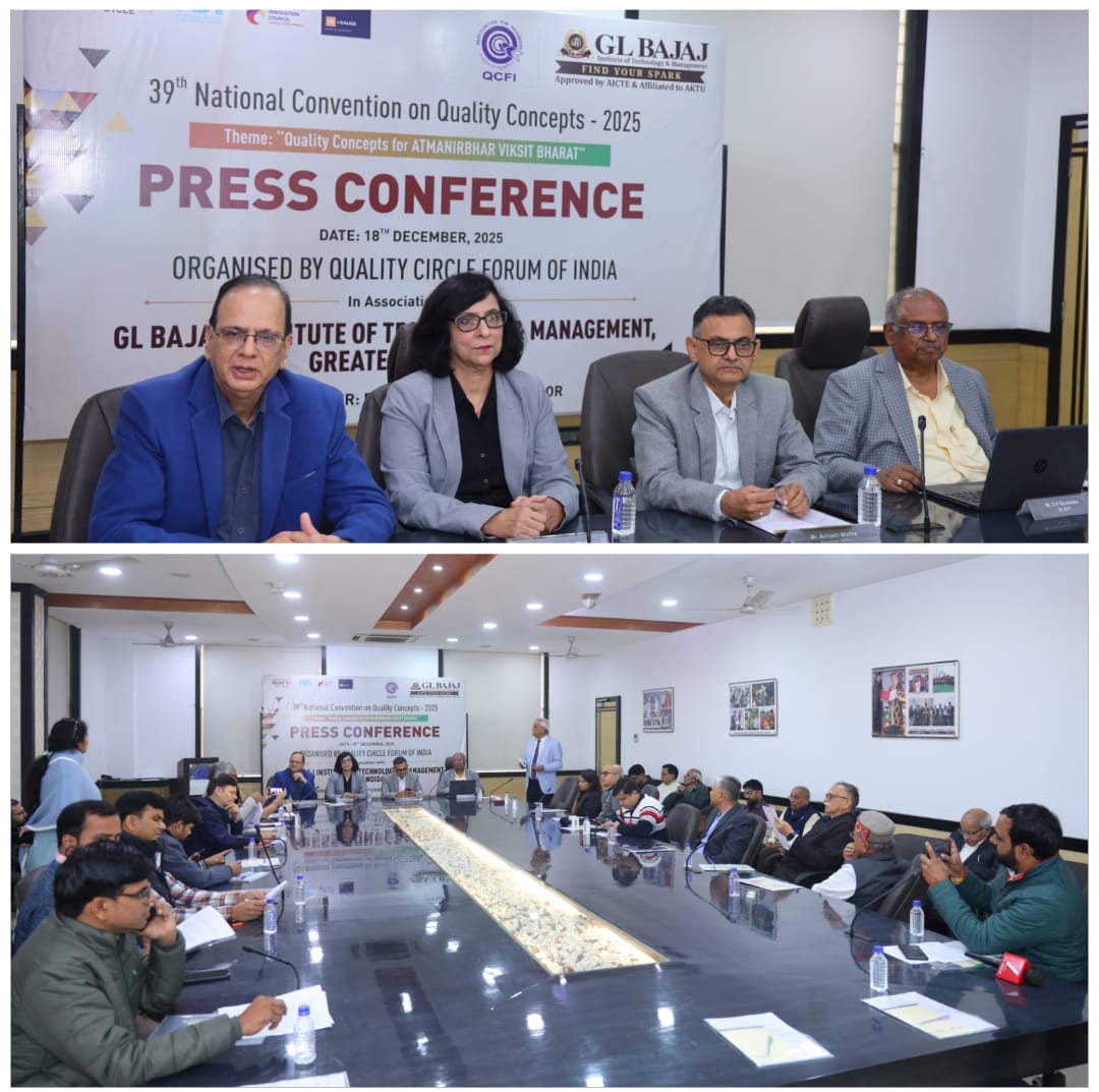 ग्रेटर नोएडा।देश में गुणवत्ता, नवाचार और निरंतर सुधार को समर्पित सबसे बड़े राष्ट्रीय आयोजनों में शामिल 39वें राष्ट्रीय गुणवत्ता अवधारणा सम्मेलन (NCQC-2025) का भव्य आयोजन 19 से 21 दिसंबर, 2025 तक ग्रेटर नोएडा स्थित जीएल बजाज इंस्टीट्यूट ऑफ टेक्नोलॉजी एंड मैनेजमेंट में होने जा रहा है। इस तीन दिवसीय सम्मेलन का आयोजन क्वालिटी सर्कल फोरम ऑफ इंडिया (QCFI) द्वारा किया जा रहा है।