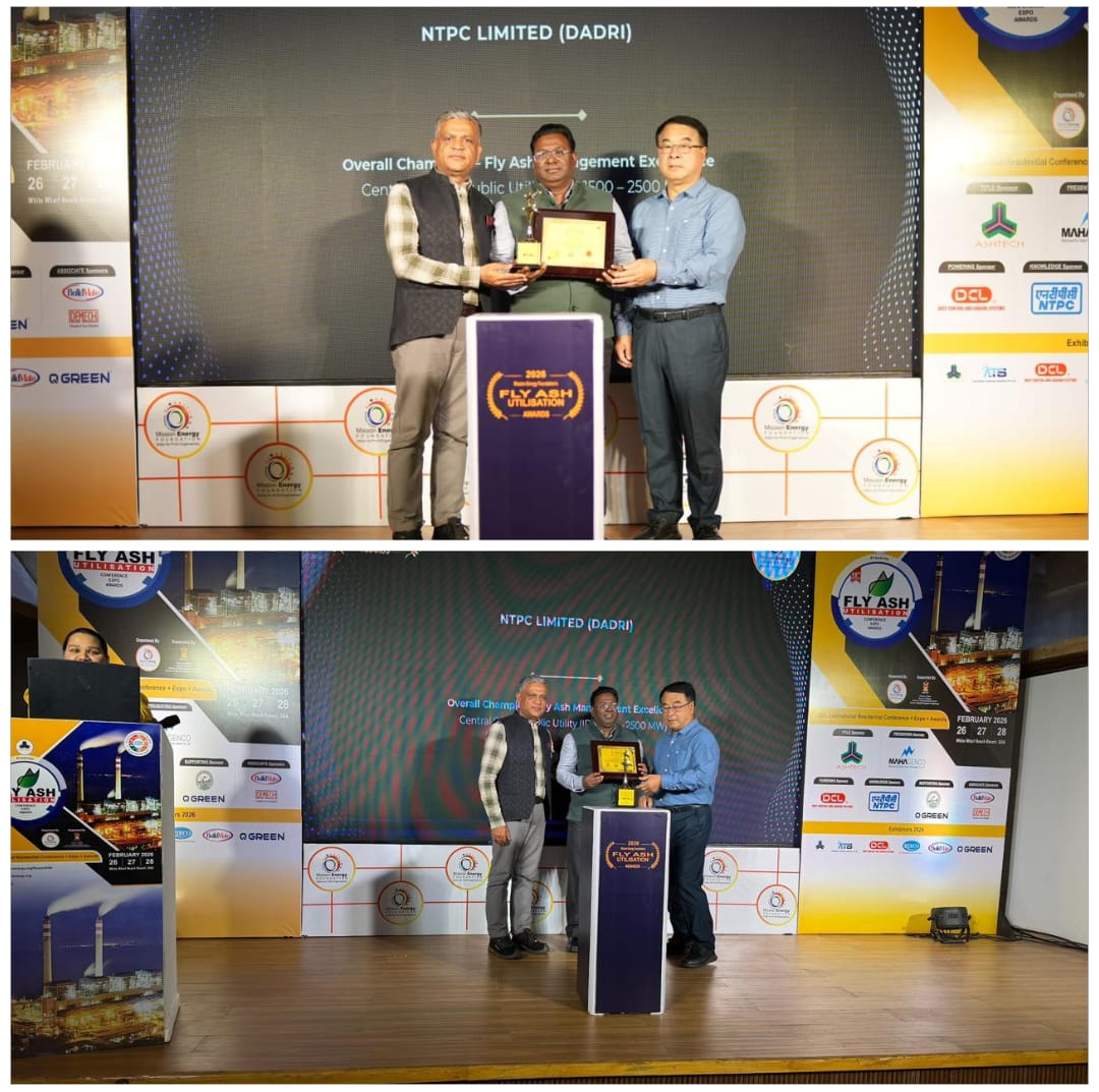 ग्रेटर नोएडा ।एनटीपीसी दादरी को गोवा में आयोजित 15वें फ्लाई ऐश उपयोग सम्मेलन एवं एक्सपो पुरस्कार 2026 में केंद्रीय क्षेत्र की सार्वजनिक उपयोगिता (1500–2500 मेगावाट) श्रेणी में “ओवरऑल चैंपियन – फ्लाई ऐश उत्कृष्टता” से सम्मानित किया गया। यह प्रतिष्ठित सम्मेलन एवं पुरस्कार समारोह मिशन एनर्जी फाउंडेशन द्वारा आयोजित किया गया, जिसमें देशभर के ऊर्जा क्षेत्र के विशेषज्ञों एवं प्रतिनिधियों ने भाग लिया। एनटीपीसी दादरी की ओर से धर्मेंद्र लाल, अपर महाप्रबंधक (राख उपयोगीकरण), ने यह सम्मान ग्रहण किया।एनटीपीसी दादरी में फ्लाई ऐश का उपयोग आंतरिक आवश्यकताओं के साथ-साथ सीमेंट, निर्माण कार्यों एवं अन्य उद्योगों में व्यापक रूप से किया जाता है, जिससे राख को संसाधन में परिवर्तित करने की दिशा में प्रभावी पहल की जा रही है। परियोजना परिसर में फ्लाई ऐश के वैज्ञानिक एवं सुरक्षित उपयोग के माध्यम से विकसित एक इको-पार्क भी विद्यमान है, जहाँ आज हजारों पेड़-पौधे फल-फूल रहे हैं। यह पर्यावरण संरक्षण, हरित आवरण वृद्धि तथा सतत विकास के प्रति एनटीपीसी दादरी की दीर्घकालिक प्रतिबद्धता का जीवंत उदाहरण है। यह सम्मान संगठन के जिम्मेदार, पर्यावरण-अनुकूल एवं सतत विद्युत उत्पादन के संकल्प को और सुदृढ़ करता है।