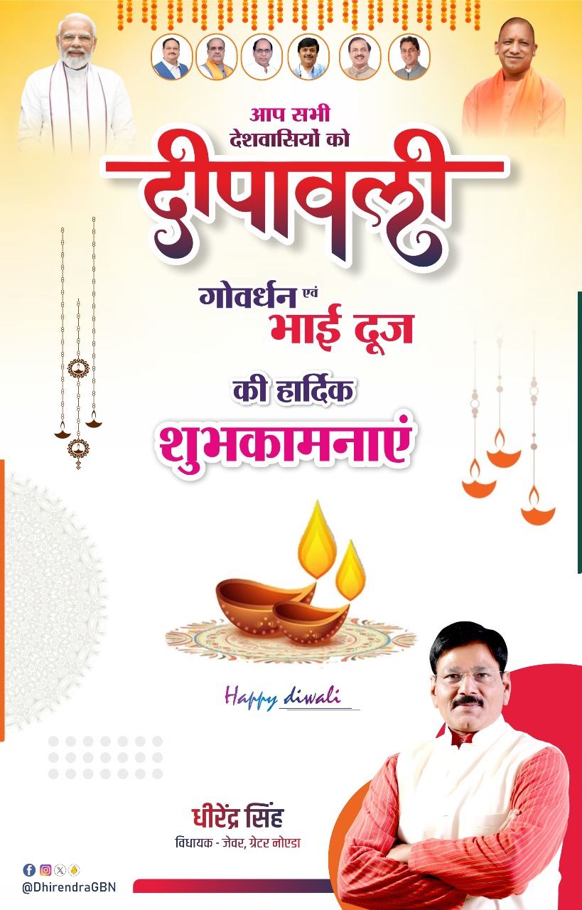 जेवर विधायक धीरेन्द्र सिंह जी की तरफ से सभी को धनतेरस, दीपावली, गोवर्धन एवं भाईदूज की हार्दिक शुभकामनाएं