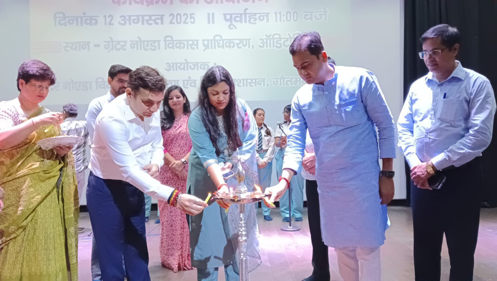 गौतमबुद्धनगर। “आजादी का अमृत महोत्सव” के उपलक्ष्य में 02 से 15 अगस्त 2025 तक आयोजित हो रहे “हर घर तिरंगा कार्यक्रम” के तहत ग्रेटर नोएडा प्राधिकरण के ऑडिटोरियम में “तिरंगा महोत्सव” का भव्य आयोजन किया गया।कार्यक्रम का शुभारंभ जिला पंचायत अध्यक्ष अमित चौधरी, भाजपा जिलाध्यक्ष गौतमबुद्धनगर अभिषेक शर्मा, जिलाधिकारी मेधा रूपम एवं अपर मुख्य कार्यपालक अधिकारी ग्रेटर नोएडा प्राधिकरण प्रेरणा सिंह तथा सुमित यादव द्वारा दीप प्रज्ज्वलन कर विधिवत रूप से किया गया। जिला पंचायत अध्यक्ष अमित चौधरी ने अपने संबोधन में कहा कि तिरंगा हमारी एकता, अखंडता और गौरव का प्रतीक है। स्वतंत्रता संग्राम से लेकर आज तक यह ध्वज देश के हर नागरिक के हृदय में देशभक्ति और त्याग की भावना का संचार करता आया है। उन्होंने कहा कि “हर घर तिरंगा कार्यक्रम” न केवल राष्ट्रीय ध्वज के प्रति सम्मान प्रकट करने का अवसर है, बल्कि यह आने वाली पीढ़ियों में देश के प्रति गर्व और जिम्मेदारी की भावना जागृत करने का भी माध्यम है।
