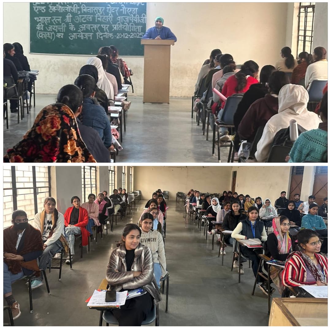 ग्रेटर नोएडा ।भारत के पूर्व प्रधानमंत्री, महान कवि, लेखक एवं भारत रत्न अटल बिहारी वाजपेई के जन्म शताब्दी वर्ष के उपलक्ष में परसन्दी देवी महाविद्यालय में एक काव्य प्रतियोगिता का आयोजन किया गया। इस कार्यक्रम में महाविद्यालय के छात्रों ने बढ़-चढ़कर भाग लिया और अटल जी के जीवन एवं कार्यों पर अपने विचार व्यक्त किए। इस अवसर पर महाविद्यालय के प्रबंधक, प्राचार्य एवं शिक्षकगण उपस्थित रहे।इस प्रतियोगिता का उद्देश्य छात्रों को अटल के आदर्शों और विचारों से प्रेरित करना था। कार्यक्रम का आयोजन सफलतापूर्वक संपन्न हुआ।