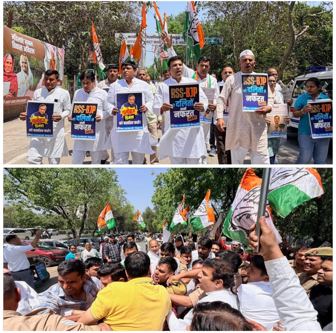 उन्होंने आगे कहा कि भाजपा सत्ता के नशे में इतनी चूर हो चुकी है कि उसे न संविधान की मर्यादा की परवाह है और न ही सामाजिक सौहार्द की। यह वही पार्टी है जो दलितों और वंचितों के सम्मान की सिर्फ बात करती है, लेकिन असल में उनका अपमान करती है।नोएडा नगर अध्यक्ष मुकेश यादव ने कहा कि भाजपा और उसके नेताओं की भाषा दिन-प्रतिदिन गिरती जा रही है। हिमंता विश्वसर्मा का बयान न केवल निंदनीय है बल्कि यह देश के सामाजिक ताने-बाने को तोड़ने की साजिश का हिस्सा है। कांग्रेस पार्टी इस तरह की जहरीली राजनीति को कभी सफल नहीं होने देगी।संगठन प्रभारी मुकेश शर्मा ने चेतावनी देते हुए कहा कि अगर भाजपा ने अपने नेताओं पर लगाम नहीं लगाई तो आने वाले समय में जनता उन्हें करारा जवाब देगी। कांग्रेस पार्टी हर स्तर पर इस मुद्दे को उठाएगी और दलित समाज के सम्मान की रक्षा के लिए निर्णायक संघर्ष करेगी।