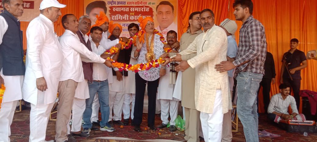 बिलासपुर। ग्रेटर नोएडा दनकौर क्षेत्र के नवादा गांव मे बजरंग वाहिनी दल के प्रदेश अध्यक्ष मनोज कुमार नागर की अध्यक्षता व नीरज सरपंच के संचालन में बजरंग वाहिनी दल द्वारा मुख्य अतिथि राष्ट्रीय अध्यक्ष गजराज सिंह के सम्मान में आयोजित स्वागत समारोह एवं रागिनी कार्यक्रम में बजरंग वाहिनी दल के प्रदेश के विभिन्न जनपदों एवं प्रान्तों से सैकड़ों की तादाद में कार्यकर्ता पदाधिकारी एवं किसान नेता पहुंचे जिनके सर पर साफा गले में माला पहना कर स्वागत सत्कार किया गया। विशिष्ट तिथि अजीत सिंह दौला, संयोजक बालकिशन नागर, संजय नवादा, राजसिंह प्रधान आदि ने मुख्य अतिथि संगठन के राष्ट्रीय अध्यक्ष गजराज सिंह को बुका व तलवार भेंट कर जोरदार अभिनंदन किया।इस मौके पर मुख्य अतिथि गजराज सिंह ने मनोज नागर को राष्ट्रीय सचिव और उत्तर प्रदेश प्रभारी राष्ट्रीय बजरंग वाहिनी दल का घोषणा करते हुए नियुक्ति पत्र सौंपा। उन्होंने कहा कि बजरंग वाहिनी दल बने कुछ ही समय हुआ है इस संगठन का मुख्य उद्देश्य सनातन धर्म व हिंदुत्व एवं गौ माता की रक्षा करना है। उन्होंने कहा कि बजरंग वाहिनी दल का गठन धीरे-धीरे पूरे भारतवर्ष में हो जाएगा अभी उत्तर प्रदेश समेत हरियाणा राजस्थान महाराष्ट्र समेत कैई राज्यों में गठित किया जा चुका है । संगठन के कार्यकर्ता संगठन की मजबूती व इसके उद्देश्य पूर्ति के लिए सक्रिय हो चुके हैं । जब भी सनातन धर्म, हिंदुओं और गौ माता पर अत्याचारों, एवं उत्पीड़न की सूचना मिलती है तो संगठन के कार्यकर्ता निष्पक्ष निडर हो इनको रोकने के लिए तैयार खड़े रहते हैं उन्होंने कहा कि बजरंग वाहिनी दल इन सब की रक्षा के लिए कृत संकल्पित है इस मौके पर अजय नागर, महावीर प्रधान, बलवीर प्रधान, गज्जू भाटी, संजय नवादा, विजय मास्टर, जगत महाशय, सत्ते मास्टर, महेंद्र सिंह, बिजेंद्र आर्य, भगतसिंह, सुरेंद्र एडवोकेट, रामनिवास, देवराज, आदेश शर्मा आदि मौजूद रहे।