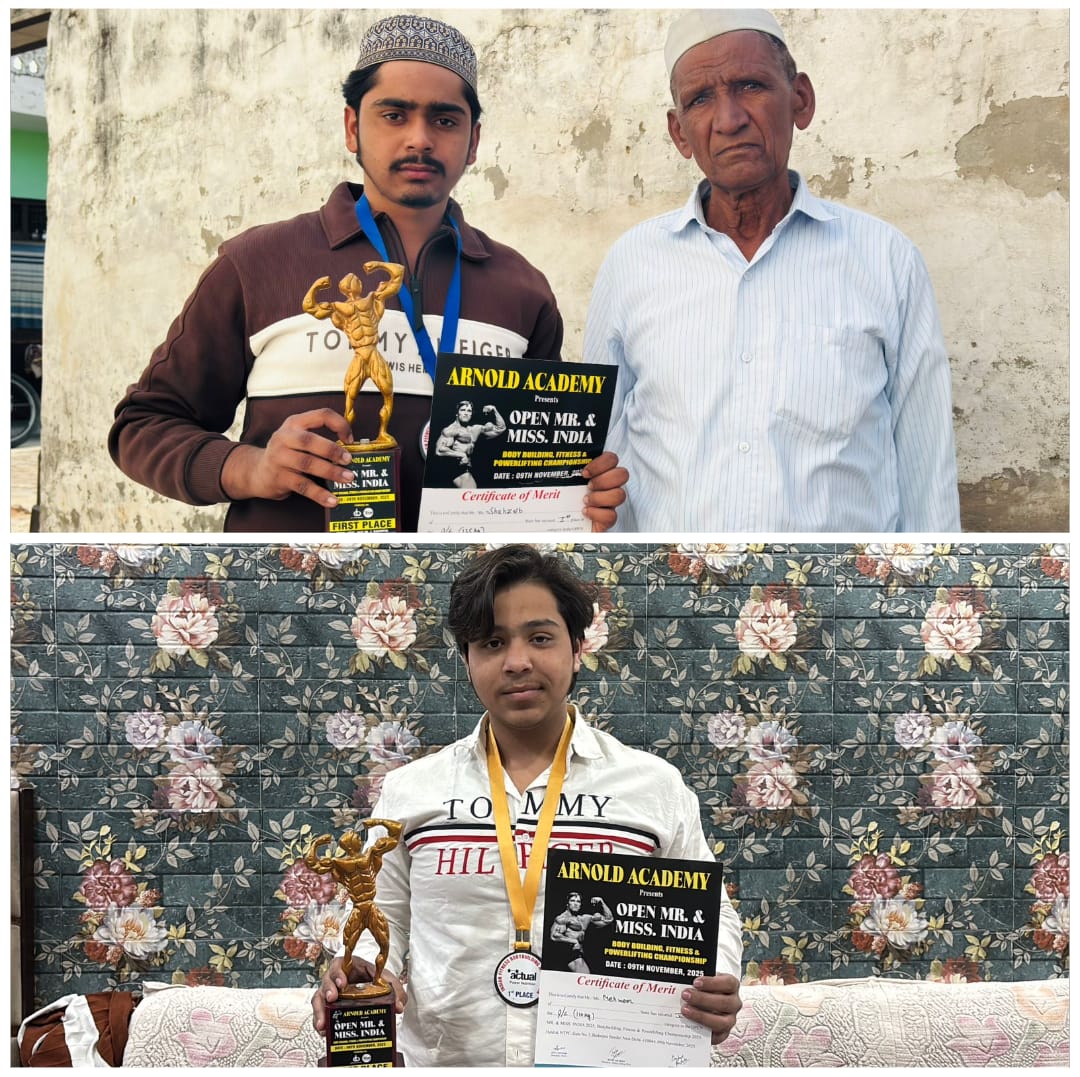 ARNOLD ACADEMY की ओपन मिस्टर एंड मिस इंडिया बॉडीबिल्डिंग फिटनेस एंड पावरलिफ्टिंग चैंपियनशिप में शाहजेब ख़ान और महमूर ख़ान ने प्राप्त किया प्रथम स्थान