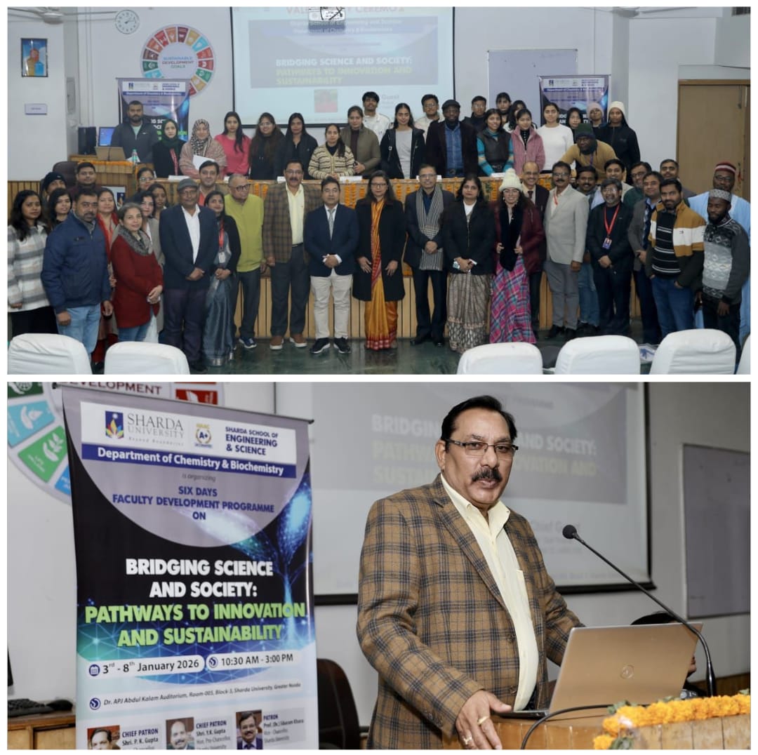 ग्रेटर नोएडा। शारदा विश्वविद्यालय के रसायन विज्ञान एवं जैव रसायन विज्ञान विभाग द्वारा इंडस्ट्री–अकादमिक कॉन्क्लेव का सफल आयोजन किया गया। इस कॉन्क्लेव का उद्देश्य शिक्षाविदों, उद्योग विशेषज्ञों, शोधकर्ताओं एवं विद्यार्थियों के बीच सार्थक संवाद और सहयोग को बढ़ावा देना था। कार्यक्रम के दौरान उद्योग और अकादमिक जगत के प्रतिष्ठित वक्ताओं ने नवीन अनुसंधान, उभरती तकनीकों, कौशल विकास, नवाचार तथा रोजगारोन्मुख शिक्षा जैसे महत्वपूर्ण विषयों पर अपने विचार साझा किए। सत्रों में उद्योग की वर्तमान आवश्यकताओं और शैक्षणिक पाठ्यक्रमों के बीच सामंजस्य स्थापित करने पर विशेष बल दिया गया।इस अवसर पर वैज्ञानिक तथा औद्योगिक परिषद के पूर्व वरिष्ठ वैज्ञानिक प्रोफेसर राम विश्वकर्मा, इमामी हेल्थकेयर लिमिटेड के पूर्व सीईओ डॉ चंद्रकांत कटियार, केंद्रीय आयुर्वेदीय विज्ञान अनुसंधान परिषद के डायरेक्टर जनरल प्रोफेसर रविनारायन आचार्य, तथा वीसीए हेल्थकेयर के मैनेजिंग डायरेक्टर डॉ वीके त्रिपाठी मुख्य वक्ताओं के रूप में उपस्थित रहे |कॉन्क्लेव ने विद्यार्थियों को उद्योग की अपेक्षाओं, करियर संभावनाओं और व्यावहारिक अनुप्रयोगों की गहन समझ प्रदान की। वहीं, शिक्षाविदों और उद्योग प्रतिनिधियों के बीच भविष्य में संयुक्त अनुसंधान, इंटर्नशिप, प्रशिक्षण एवं ज्ञान-साझाकरण की संभावनाओं पर भी चर्चा हुई। विभागाध्यक्ष डॉ अनुपम अग्रवाल ने सभी वक्ताओं, प्रतिभागियों और सहयोगियों का आभार व्यक्त करते हुए कहा कि इस प्रकार के आयोजन अकादमिक उत्कृष्टता और उद्योग-संगत शिक्षा को सुदृढ़ करने में महत्वपूर्ण भूमिका निभाते हैं। कार्यक्रम का समापन सकारात्मक संवाद और भविष्य में सहयोग की प्रतिबद्धता के साथ हुआ।इस अवसर पर डॉ भुवनेश कुमार, डॉ एन बी सिंह, डॉ श्यामल बनर्जी, डॉ अनुपम अग्रवाल,डॉ संदीप सिंह, डॉ गीता दुर्गा, डॉ विनय वर्मा, डॉ प्रीति जैन, डॉ विवेक श्रीवास्तव, डॉ शशांक शर्मा, डॉ नूपुर श्रीवास्तव, डॉ मृदुला, डॉ सुरेन्द्र, डॉ आशीष, डॉ गौरव, डॉ मणिदीपा, डॉ प्रिया दास, डॉ शिवानी प्रिया, डॉ शयन्ति मण्डल आदि उपस्थित रहे ।