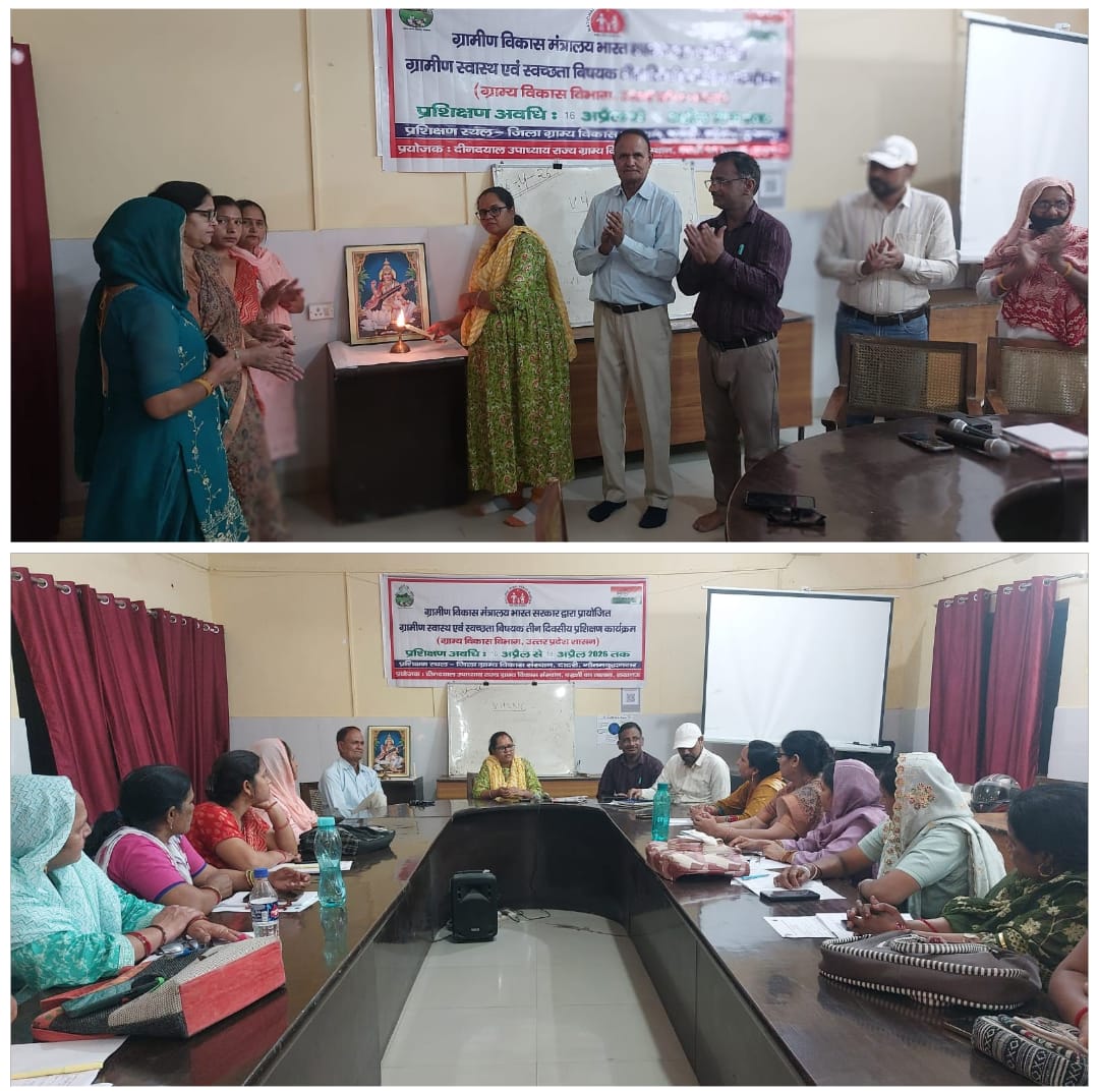 जिला ग्राम्य विकास संस्थान, दादरी (गौतमबुद्धनगर) में दिनांक 13-04-2026 से “ग्रामीण स्वास्थ्य एवं स्वच्छता” विषय पर त्रिदिवसीय प्रशिक्षण कार्यक्रम का आयोजन किया गया, जिसका समापन दिनांक 15-04-2026 को जिला प्रशिक्षण अधिकारी डॉ. प्रियंका शर्मा द्वारा किया गया। इसके उपरांत द्वितीय सत्र का शुभारंभ दिनांक 16-04-2026 को दीप प्रज्ज्वलन के साथ किया गया। इस प्रशिक्षण कार्यक्रम में कुल 30 प्रतिभागियों ने सहभागिता की, जिनमें बाल विकास पुष्टाहार, एनआरएलएम, पंचायती राज तथा आशा कार्यकर्ता शामिल रहे। प्रशिक्षण के दौरान प्रतिभागियों को ग्रामीण स्वास्थ्य, स्वच्छता एवं पोषण से संबंधित विषयों पर विस्तृत जानकारी प्रदान की गई तथा सामुदायिक सहभागिता के महत्व पर विशेष रूप से प्रकाश डाला गया। कार्यक्रम में सतत विकास लक्ष्यों (एसडीजी), स्वच्छ भारत मिशन, पंचायती स्तर पर सतत विकास, आयुष्मान भारत, तरल एवं ठोस अपशिष्ट प्रबंधन, मासिक धर्म स्वच्छता एवं व्यवहार परिवर्तन, ग्रामीण शौचालय निर्माण तथा पेयजल प्रबंधन जैसे महत्वपूर्ण विषयों पर विस्तारपूर्वक प्रशिक्षण दिया गया। प्रशिक्षण सत्रों का संचालन डॉ. प्रियंका शर्मा (जिला प्रशिक्षण अधिकारी, गौतमबुद्धनगर), डॉ. सोना प्रियदर्शिनी (चिकित्सा अधिकारी, दादरी), होपेन्द्र सिंह, अशोक राघव एवं डॉ. विजय पाल सिंह (मास्टर ट्रेनर) द्वारा किया गया, जिनके मार्गदर्शन में कार्यक्रम सफलतापूर्वक संपन्न हुआ।