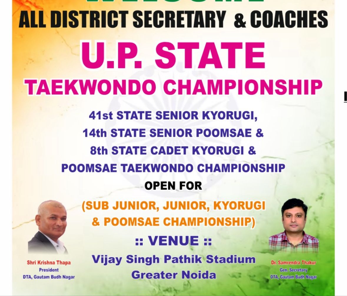 उत्तर प्रदेश राज्य ताइक्वांडो चैंपियनशिप 2025: ग्रेटर नोएडा में 12 से 14 अक्टूबर तक दिखेगा खिलाड़ियों का दमखम,ग्रेटर नोएडा के विजय सिंह पथिक स्टेडियम में होगा आयोजन