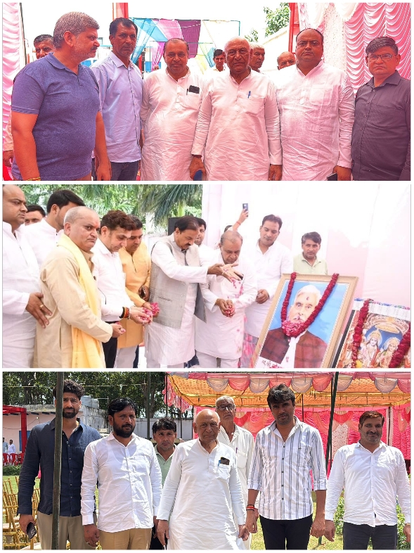 ग्रेटर नोएडा। बिलासपुर निवासी स्वर्गीय महेश चंद्र गोयल जिन्हें महेश चंद दीवान जी भी कहा जाता था उनके श्रद्धांजलि सभा एमपी फार्म हाउस में आयोजित की गई स्वर्गीय महेश चंद गोयल के पुत्र प्रदीप गोयल बिलासपुर व्यापार मंडल के अध्यक्ष और व्यापारी नेता हैं सोमवार को हुई श्रद्धांजलि सभा जिसमें हजारों लोग शामिल हुए इस कार्यक्रम में सांसद डॉक्टर महेश शर्मा, जिला पंचायत अध्यक्ष अमित चौधरी, पूर्व मंत्री वेदराम भाटी, जिला पंचायत सदस्य देवा भाटी, पूर्व जिला पंचायत सदस्य योगेंद्र भाटी, पूर्व प्रत्याशी नरेंद्र भाटी डाढ़ा, पूर्व प्रत्याशी मनोज चौधरी,जिला पंचायत सदस्य सुनील भाटी के पुत्र हिमांशु भाटी,बिलासपुर के चेयरमैनपति संजय भैया, पूर्व चेयरमैन साबिर कुरेशी,पूर्व चेयरमैन सुदेश नागर के पति कुक्की नागर, पूर्व चेयरमैन कुमकुम शर्मा के पति राकेश शर्मा, निजाम पहलवान,पूर्व चेयरमैन प्रत्याशी शाकिर खान,पूर्व चेयरमैन प्रत्याशी नसीर सलमानी,सभासद अरशद खान,सुल्तान नागर, कपिल शर्मा, राहुल पंडित ओमकार भाटी सहित हजारों लोग शामिल हुए