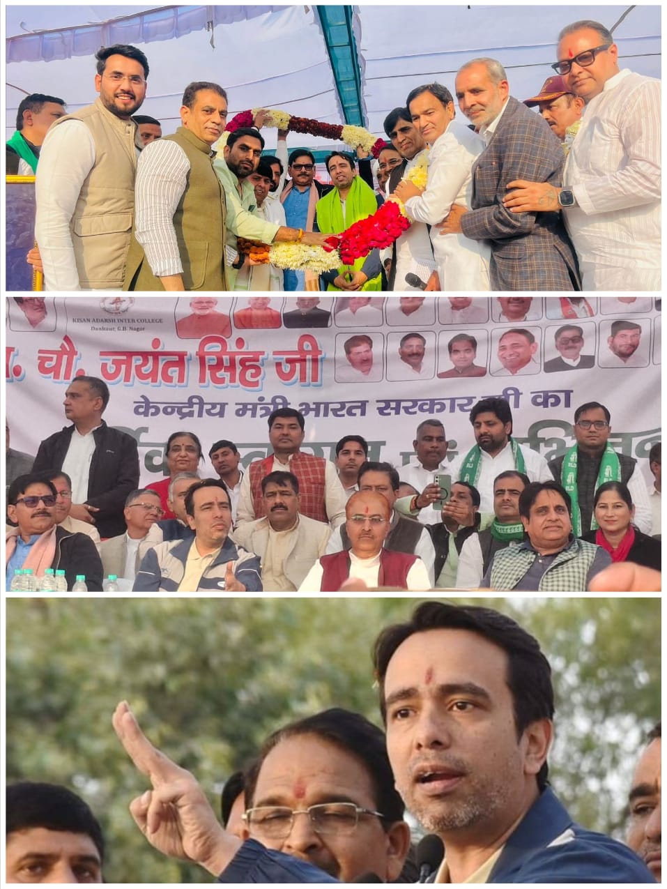 ग्रेटर नोएडा ।किसान इंटर आदर्श कॉलेज में केंद्रीय मंत्री राष्ट्रीय अध्यक्ष जयंत चौधरी द्वारा दो करोड़ की धनराशि से इंडोर स्टेडियम का शिलान्यास राष्ट्रीय अध्यक्ष जयंत चौधरी स्थानीय विधायक धीरेन्द्र सिंह तथा राष्ट्रीय लोकदल के चंदन चौहान, कैबिनेट मंत्री अनिल सिंह, दादरी विधायक तेज़पाल नागर,राष्ट्रीय सचिव मलूक नागर,जोगिंदर अवाना ,मदन भैया,हरिश्चंद्र भाटी तथा पार्टी के पदाधिकारीगण कार्यकर्तागणो के सहयोग से बड़े ही उत्साह के साथ शिलान्यास किया गया। इस कार्यकम में हजारों लोग शामिल हुए इस मौके पर राष्ट्रीय अध्यक्ष जयंत चौधरी ने कहा कि यह धनराशि मैंने जो दी है इंडोर स्टेडियम के लिए इससे ना केवल गौतमबुद्धनगर के बच्चे बल्कि आस पास के लोग आस पास ज़िलों के युवा बच्चे लाभान्वित होंगे उनका भविष्य निर्धारित होगा खेल कूद से बच्चों में न केवल आत्म निर्भर बनने की क्षमता बढ़ती है बल्कि देश के लिए गौरव की बात है इंडोर स्टेडियम से खिलाड़ी बनकर ओलंपिक में मेडल लाकर देश का नाम रोशन करेंगे राष्ट्रीय अध्यक्ष जी ने कहा की धनराशि मैंने इसलिए दी है क्योंकि मैंने अपने राजनीतिक विरासत से किसान बिरादरी युवा वर्ग से महिला वर्ग से प्रेम करना सीखा है भारत रत्न चौ चरण सिंह जो किसानों की विरासत छोड़ कर गए हैं मैं उसको आगे बढ़ाते हुए आप सबके बीच बड़े ही प्रेम से आज उत्साह के साथ यह धनराशि आपको सौंप रहा हूँ और यह मेरा प्यार है आपके प्रति जो मुझे विरासत में मिला है भारत रत्न चौ. चरण सिंह जातिवाद के ख़िलाफ़ रहते थे जयंत चौधरी ने कहा कि जातिवाद जाट गुज़र अज़गर मज़गर के चक्कर में न फँस कर सभी आपस में मिलकर प्रेम से देश हित और जनहित के लिए राजनीति करें और जितना हो सके विकास के मुद्दों को लेकर आगे बढ़ें ।इस मौके पर स्कूल प्रबंधन से जुड़े लोगों जिनमें सुबोध नागर सहित सभी लोगों ने जयंत चौधरी का आभार व्यक्त किया इस कार्यक्रम में एडवोकेट प्रियंका अत्री पूर्व प्रदेश प्रवक्ता,जिलाध्यक्ष जनार्दन भाटी,इंद्रवीर भाटी,अजीत दौला,आजाद मलिक,निशांत भाटी,सुल्तान नागर,अनीता चौधरी,हरवीर तालान, हेमा पाठक,अतुल चौधरी,अनीता चौधरी,रिजवाना,हरिओम भाटी गजेंद्र अत्री दानवीर सभी उपस्थित रहे